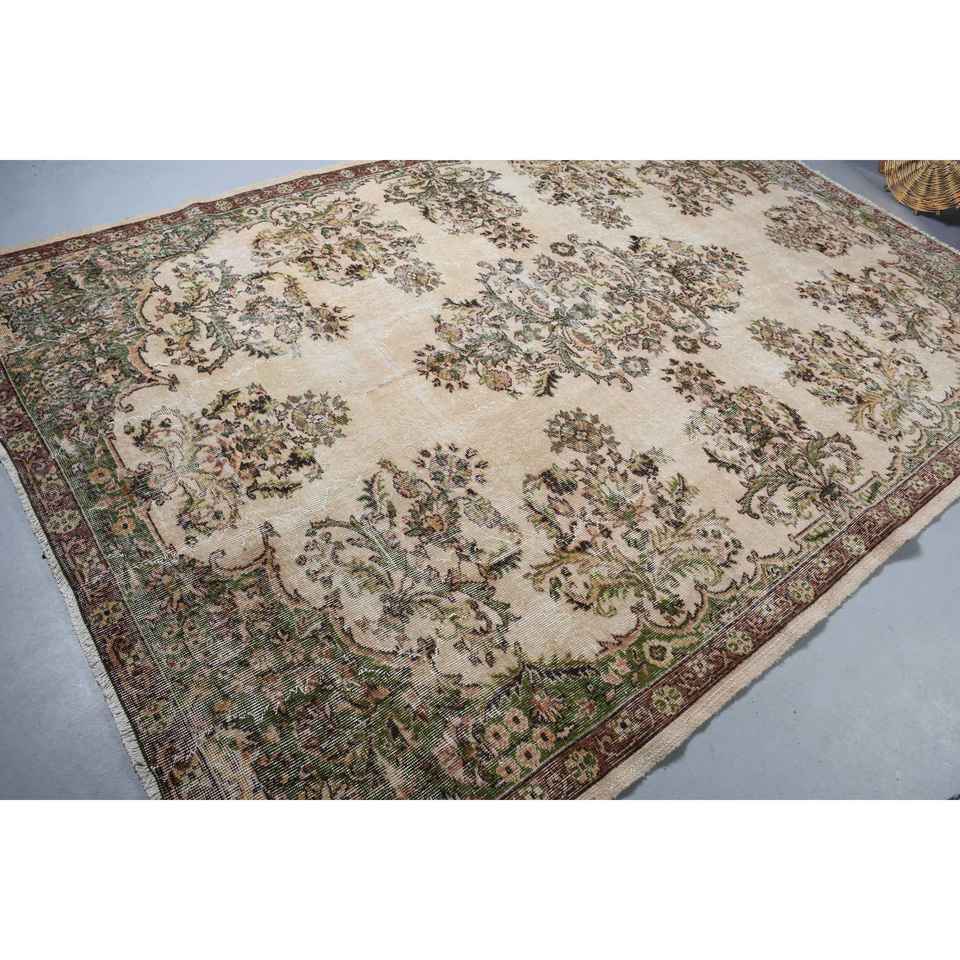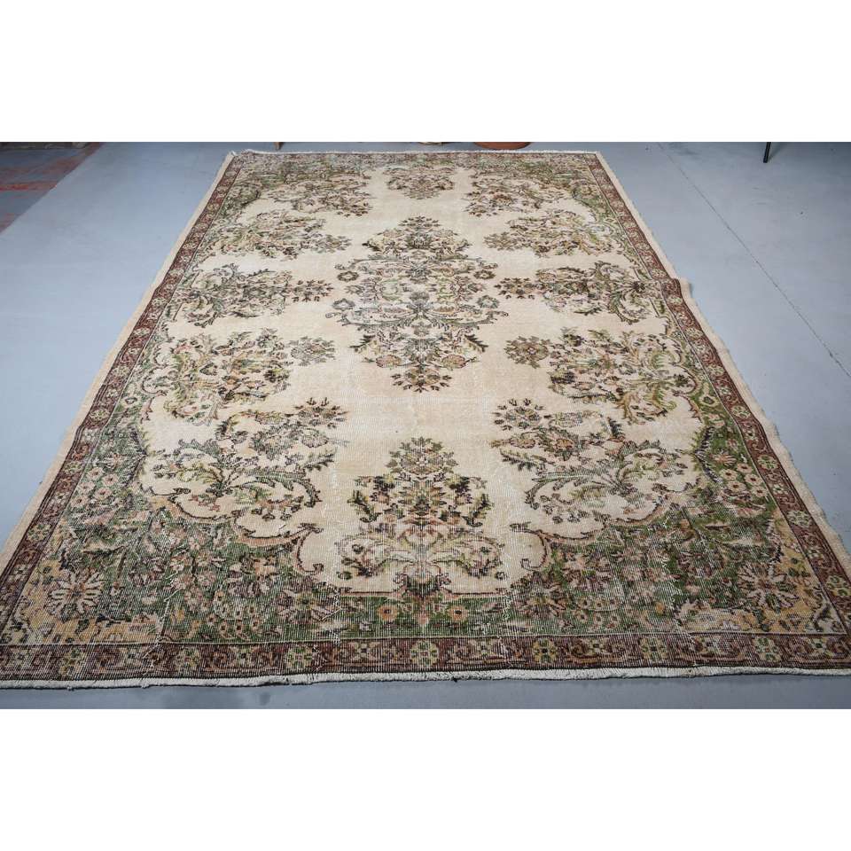 Tapis turc surdimensionné 7,1x10,6 pieds, tapis en laine vintage à bordures vertes