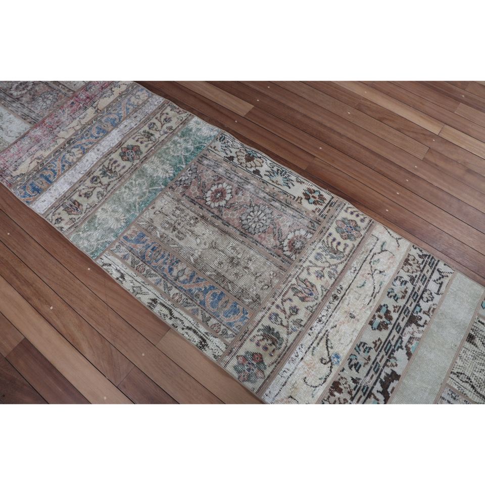 Tapis turc patchwork 2,6x11 pieds, marron arc-en-ciel géométrique avec éléments floraux, tapis vintage