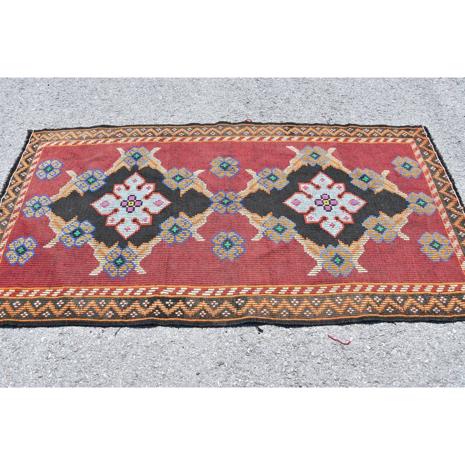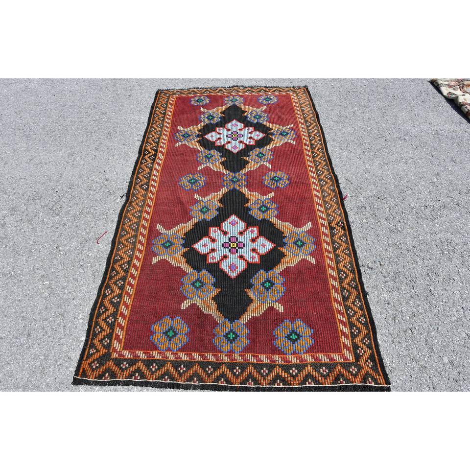 Tapis en laine noire rouge turque 3.6 X 6.7ft Kilim grande surface patchwork abstrait Rectangle Design pour couloir 10mm tapis de chambre en Latex