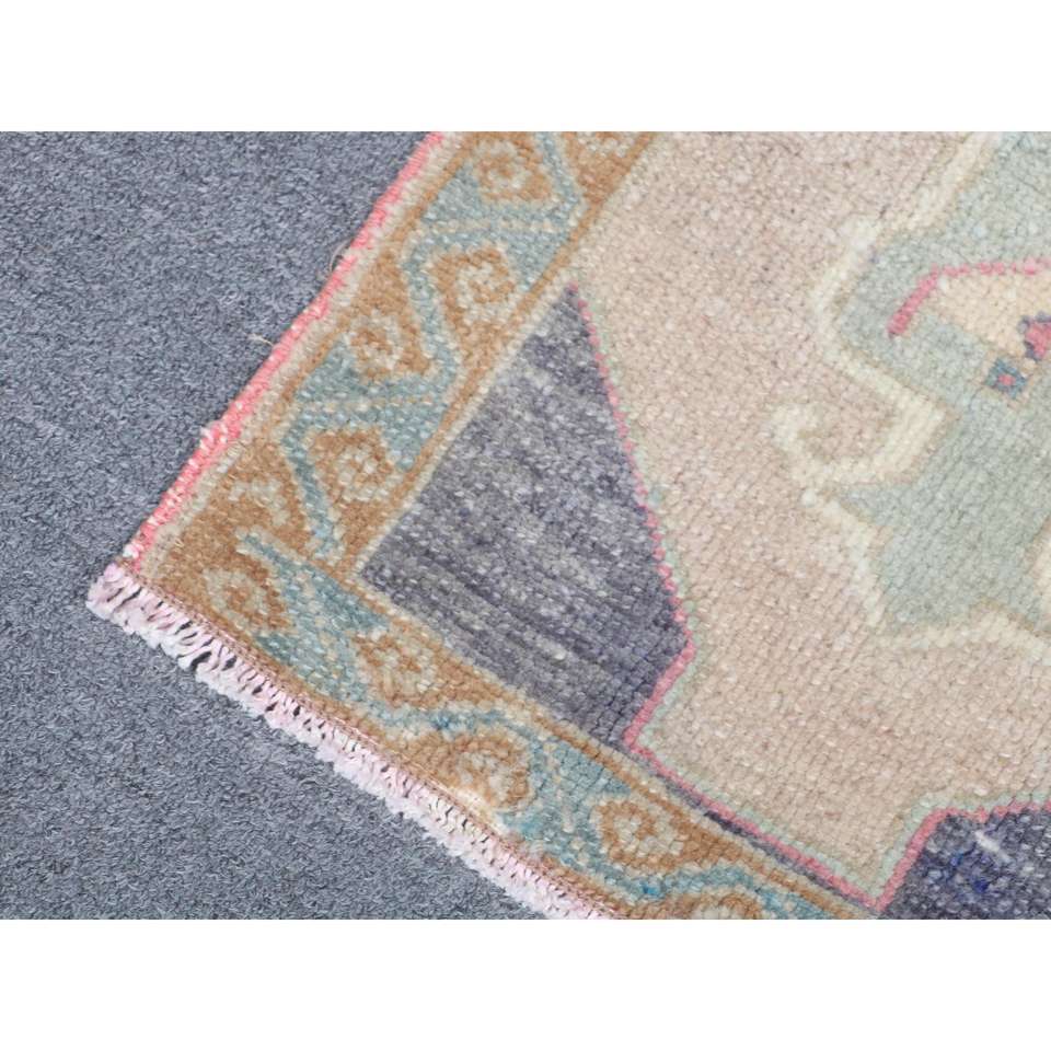 Tapis turc, petit tapis de 1,4 x 2,6 pieds, tapis en laine bleu et marron