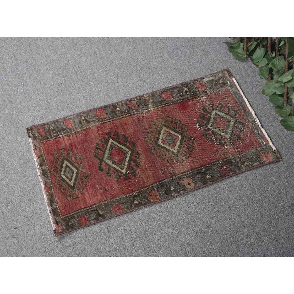 Tapis turc, tapis vintage 1,4x2,6 pieds, tapis persan en laine rouge