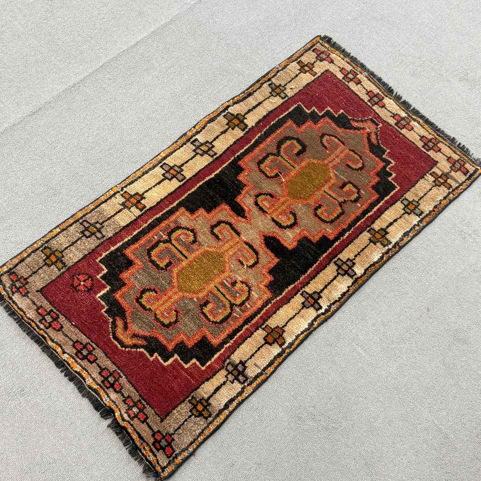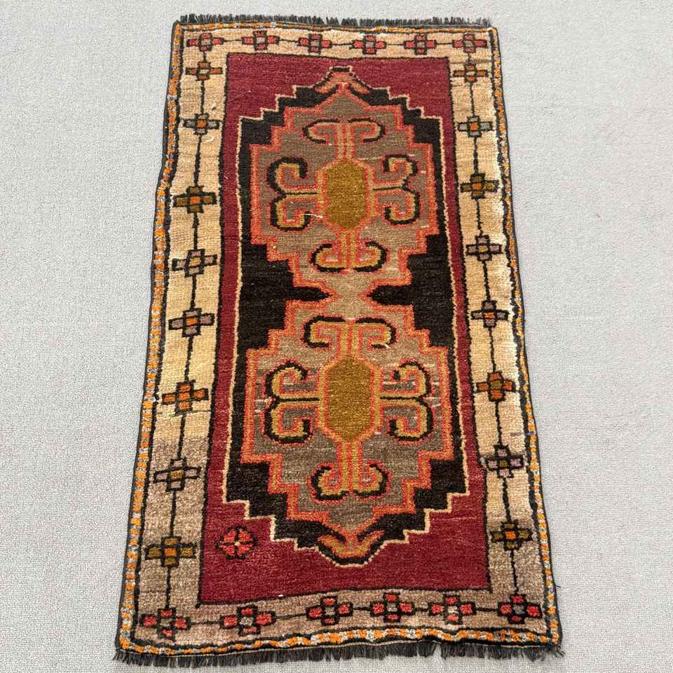 Tapis turc, tapis vintage 1,8x3,3 pieds, tapis oriental en laine rouge