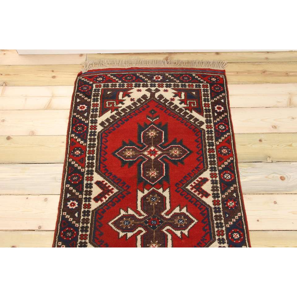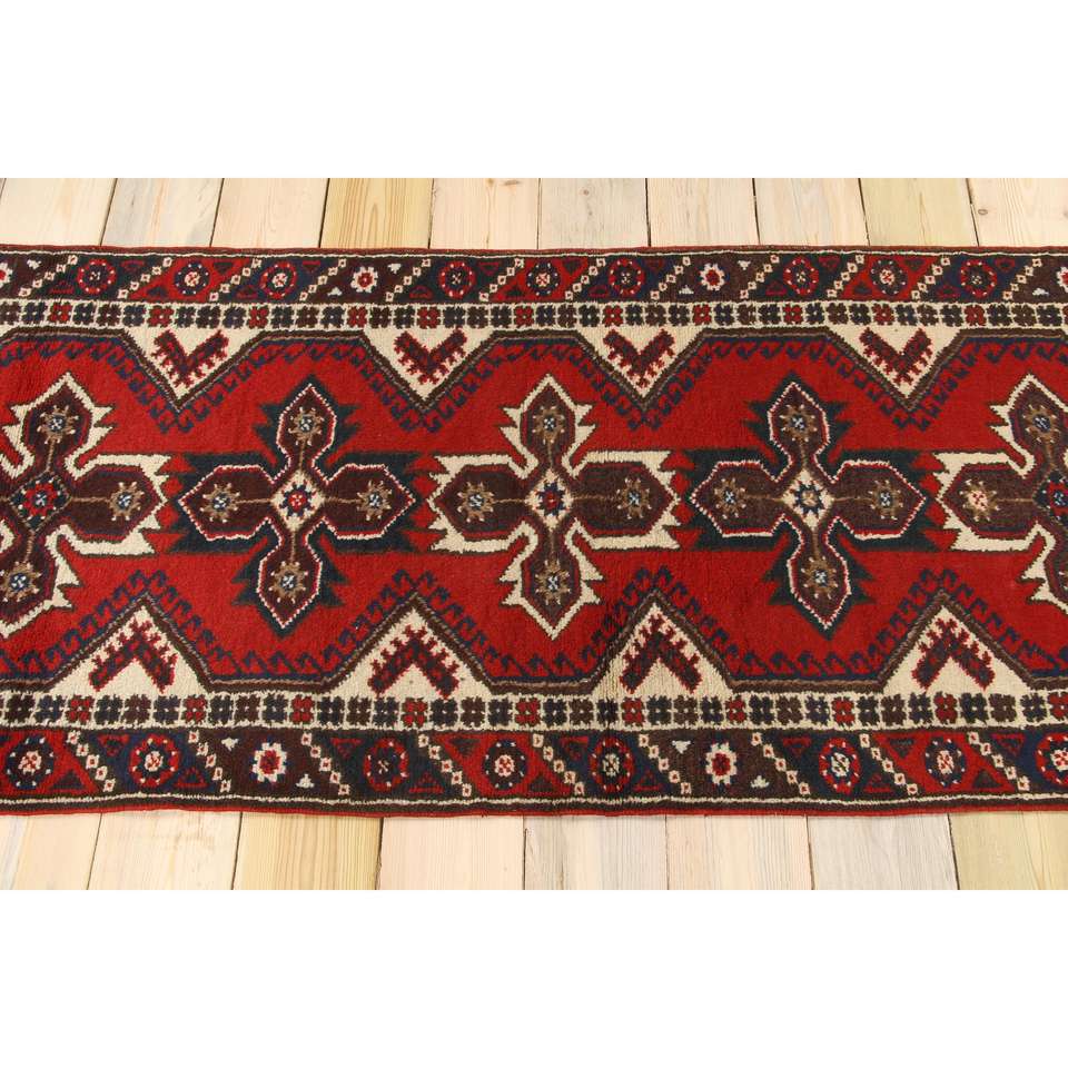 Tapis turc, tapis vintage 2,4x9,2 pieds, tapis en laine rouge à imprimé animal