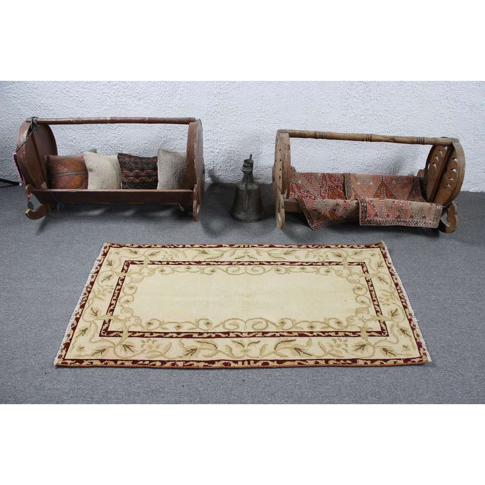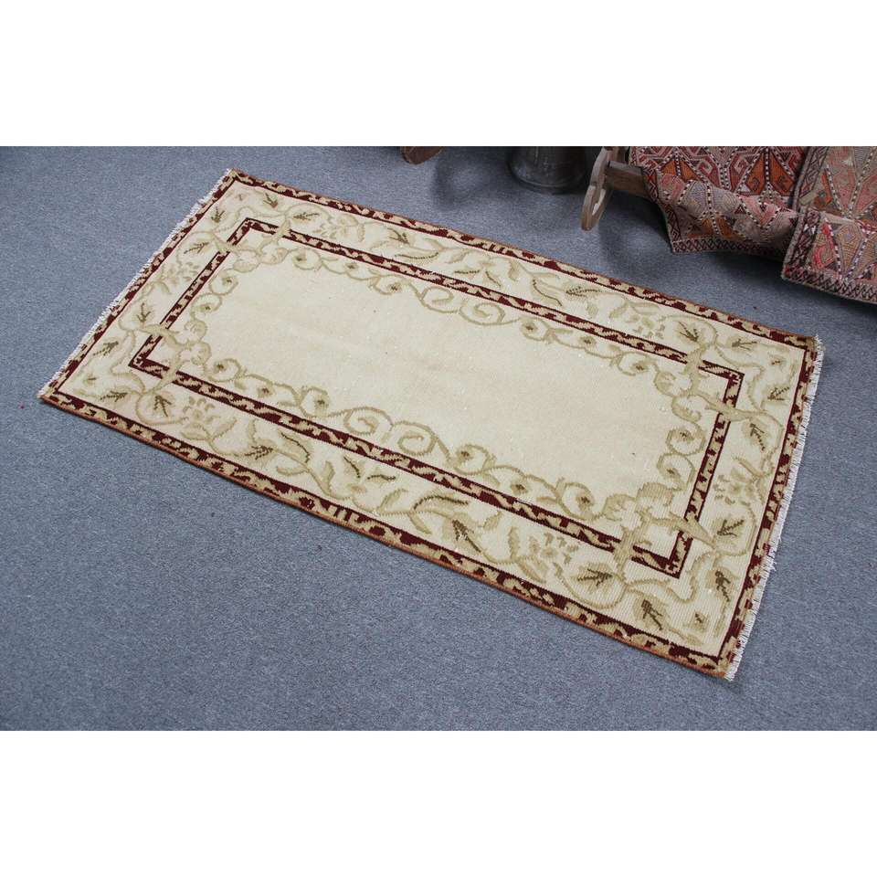 Tapis turc, tapis vintage 2,5x4,9 pieds, tapis en laine marocaine beige brun