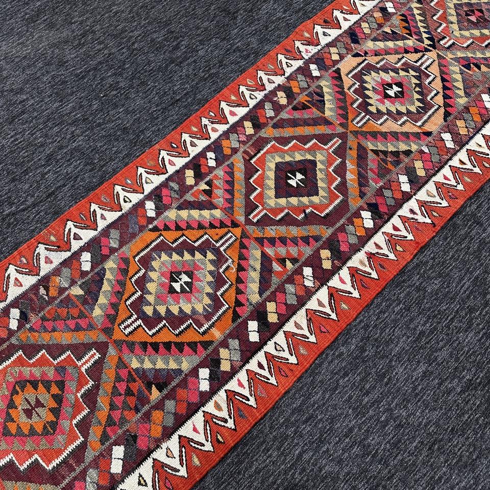Tapis turc, petit tapis de 2,9 x 10,3 pieds, tapis en laine Herki arc-en-ciel