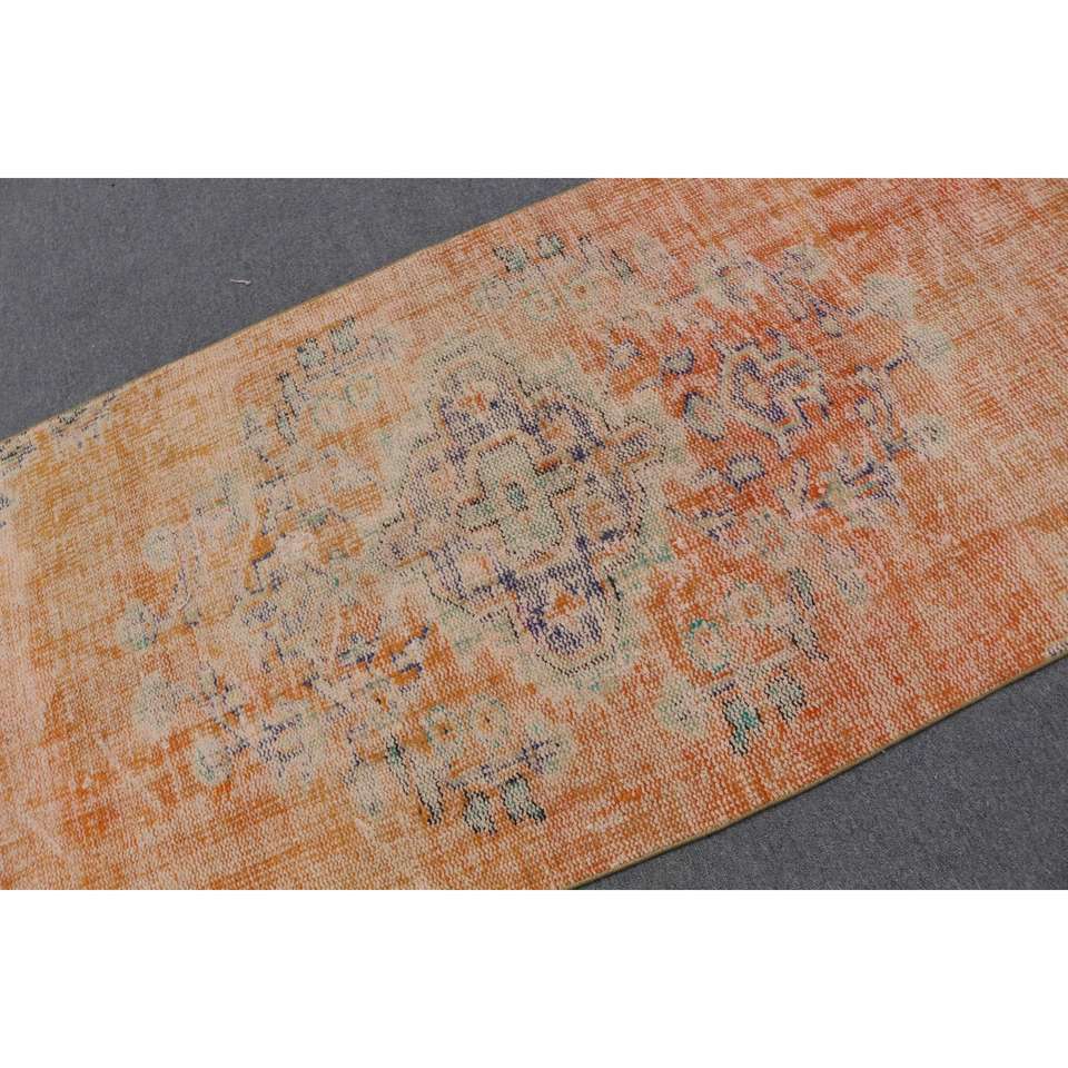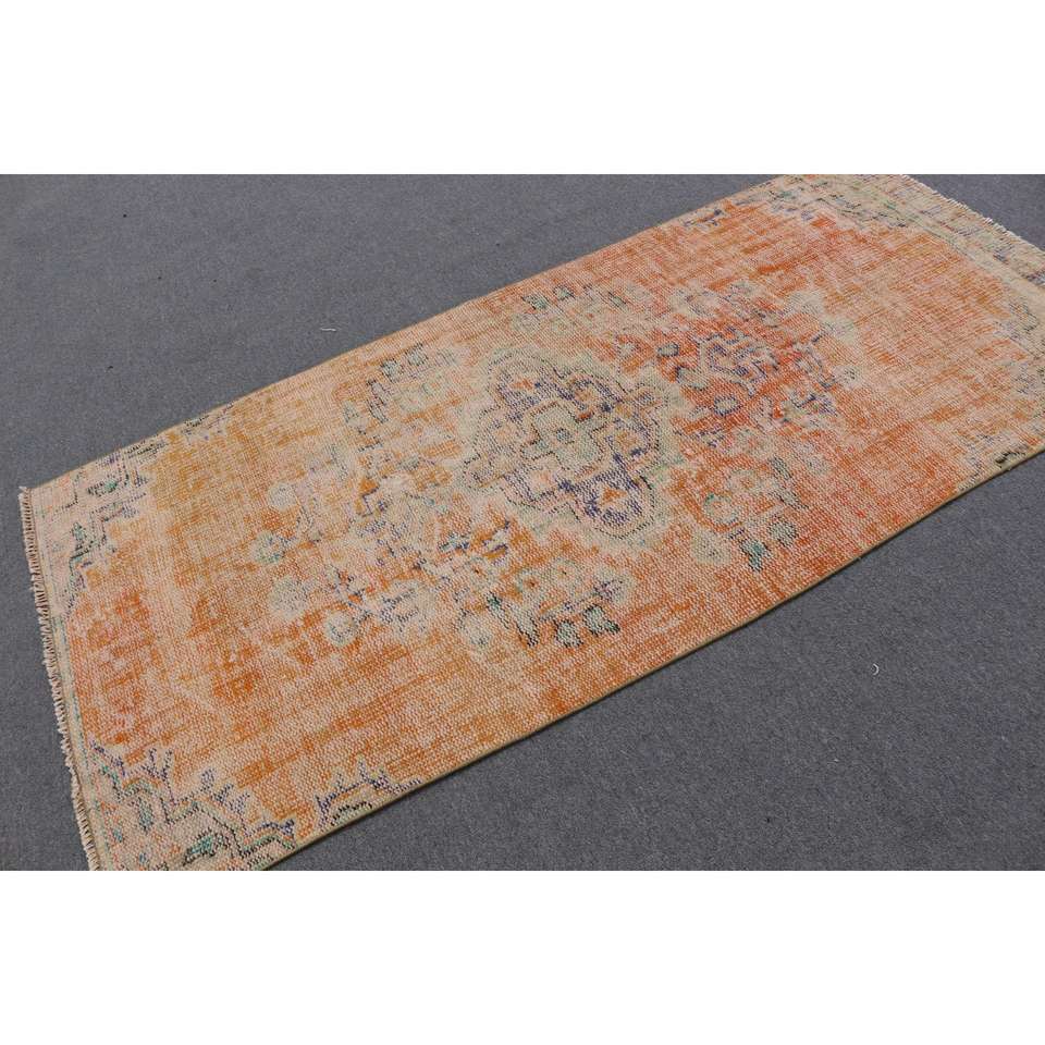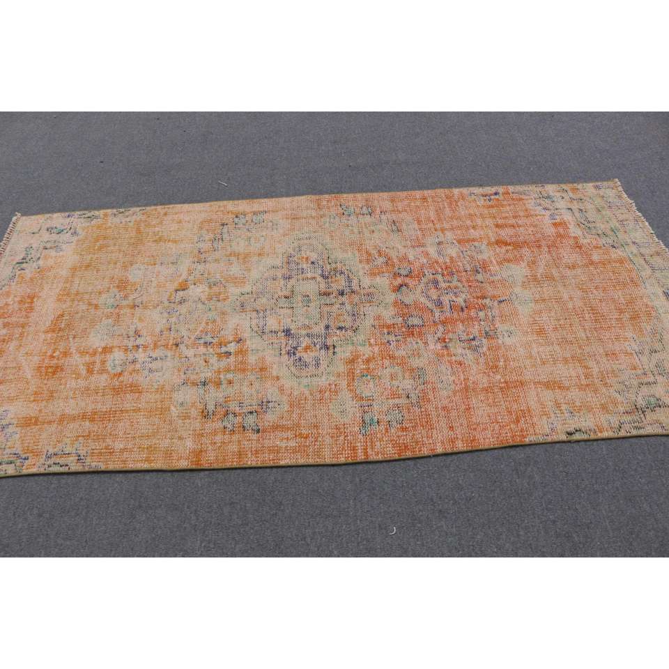 Tapis turc, tapis vintage 3,5x7,6 pieds, tapis en laine à carreaux orange et bleu