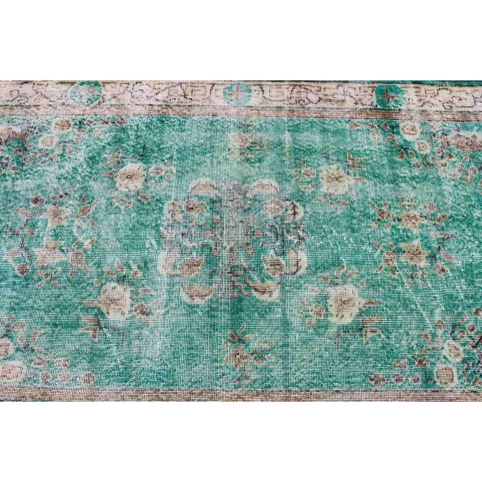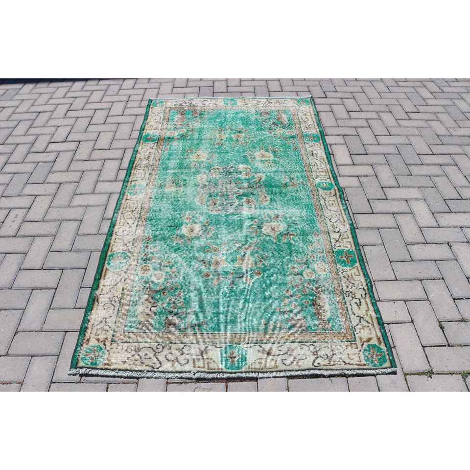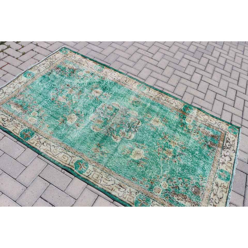 Tapis turc, tapis de sol 3,8x6,5 pieds, tapis en laine vert et marron