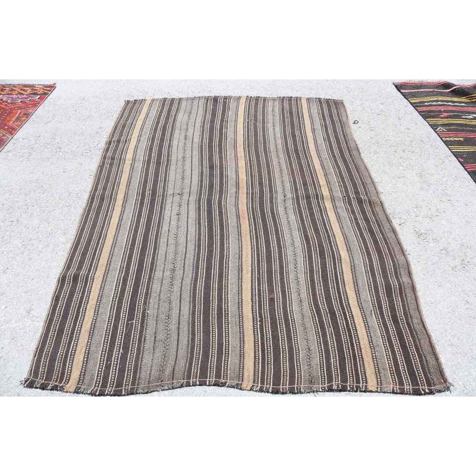 Tapis turc, tapis vintage 4,9x6,6 pieds, tapis en laine unie marron gris