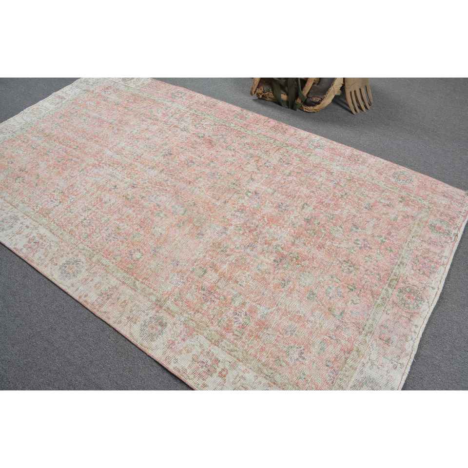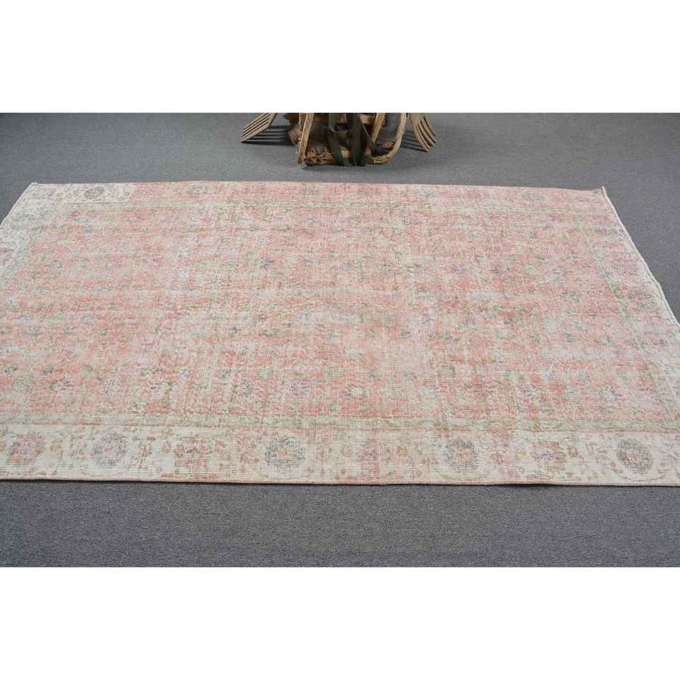 Tapis turc, grand tapis de 4,9 x 8,5 pieds, tapis vintage en laine rayé rose