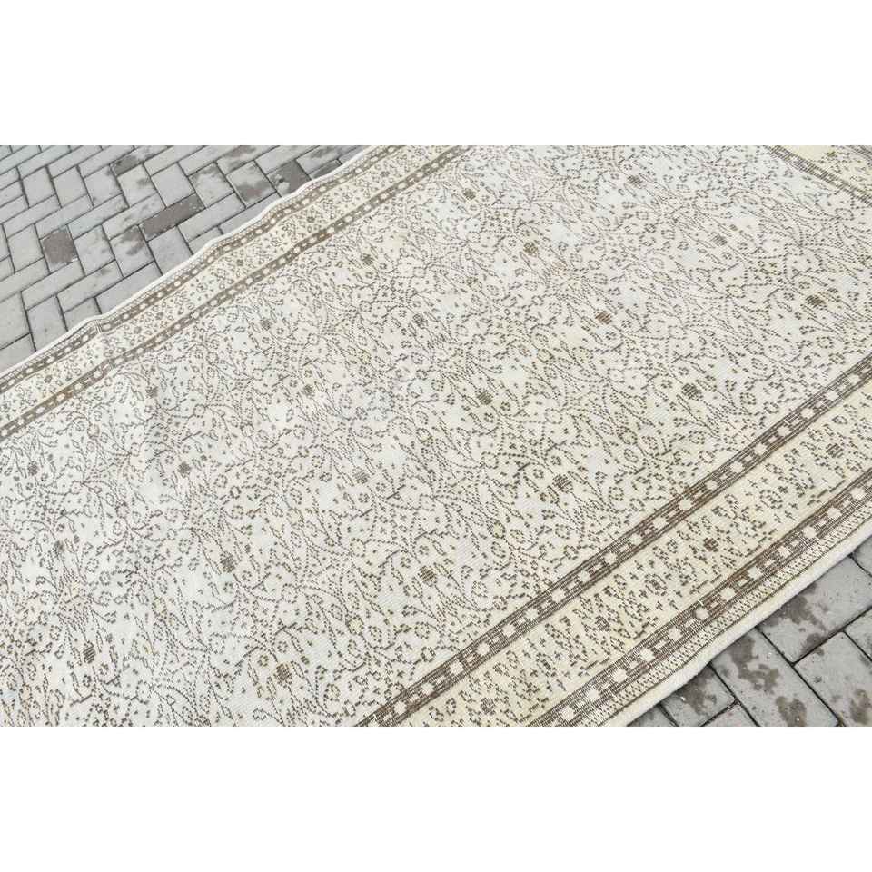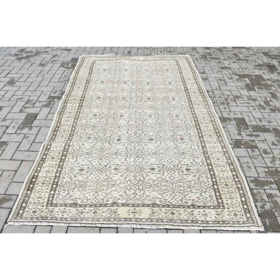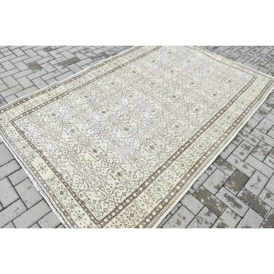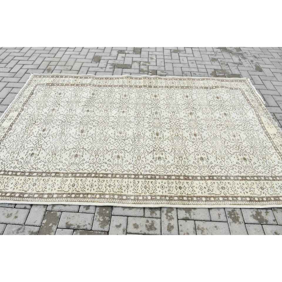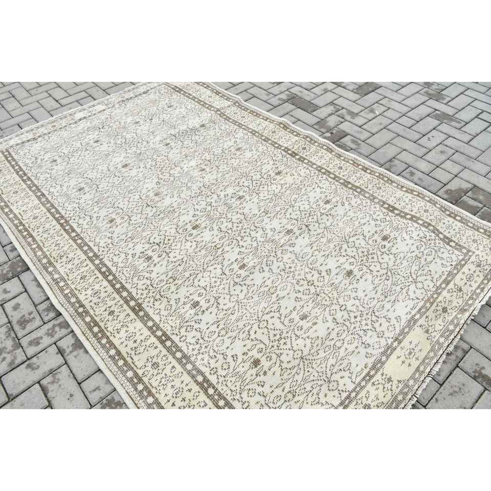 Tapis turc 5,3x8,2 pieds, tapis oriental vintage en laine blanc et marron