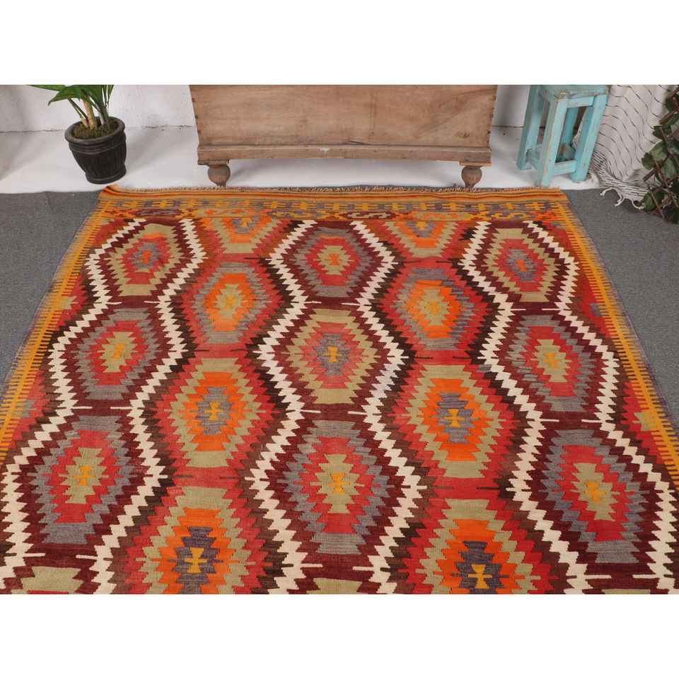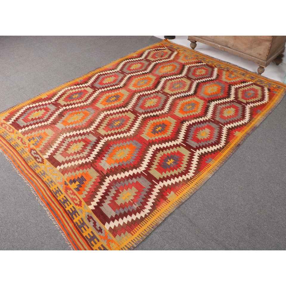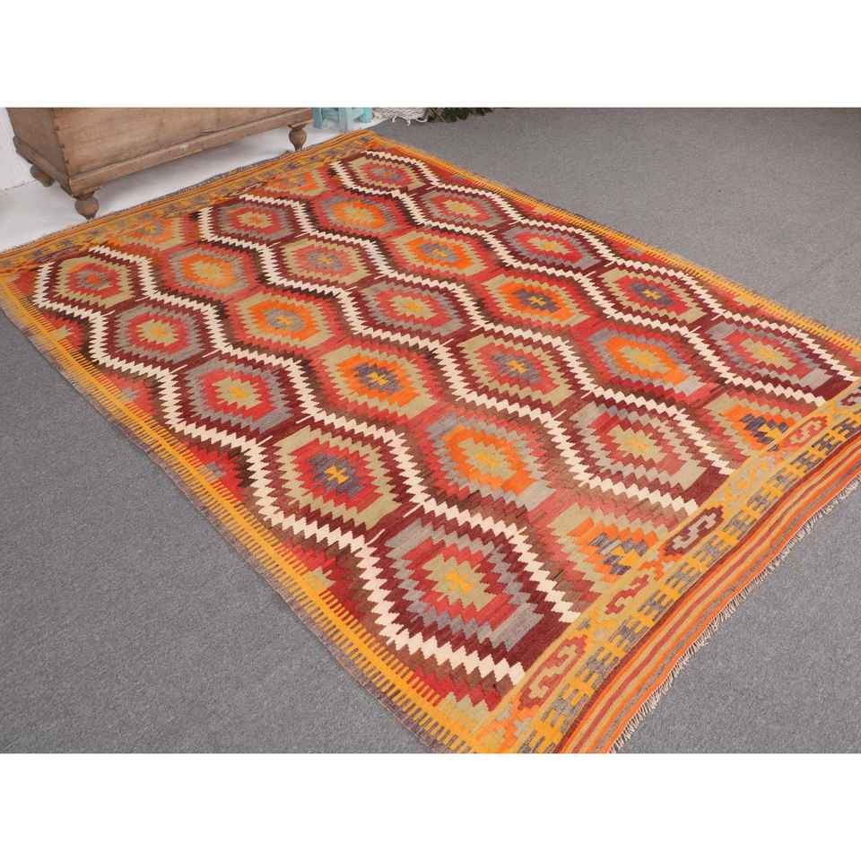 Tapis turc, grand tapis de 5,7 x 8,1 pieds, tapis vintage en laine persane rouge