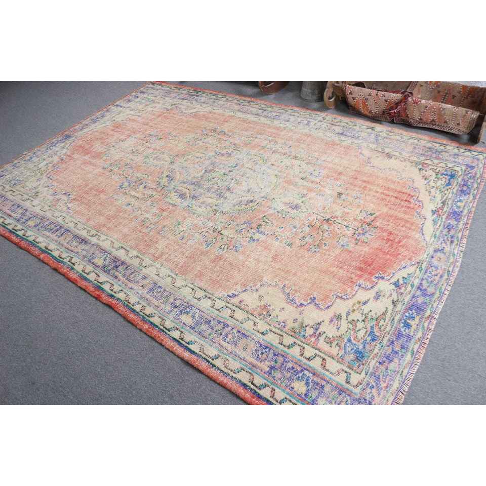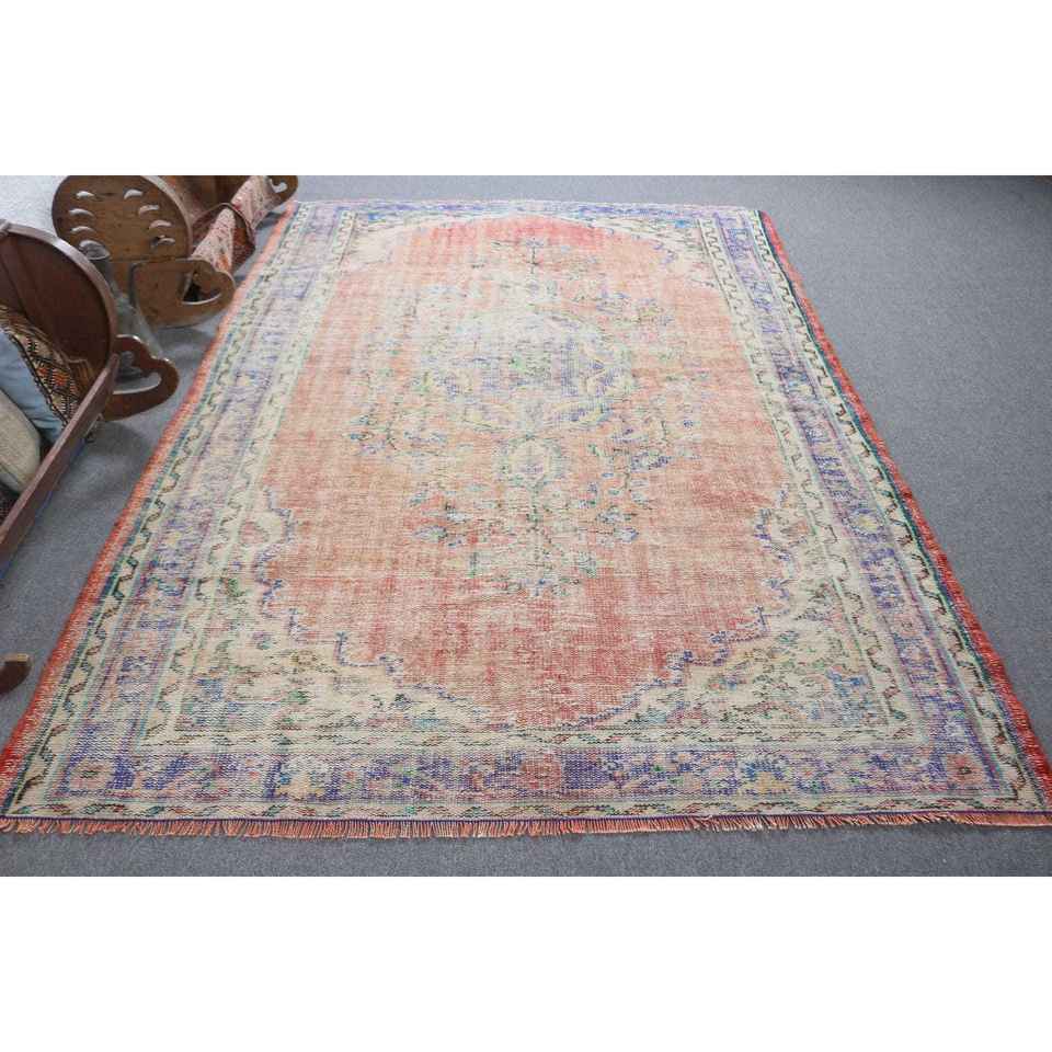 Tapis turc, grand tapis vintage 6,2x9 pieds, tapis camouflage rouge et bleu