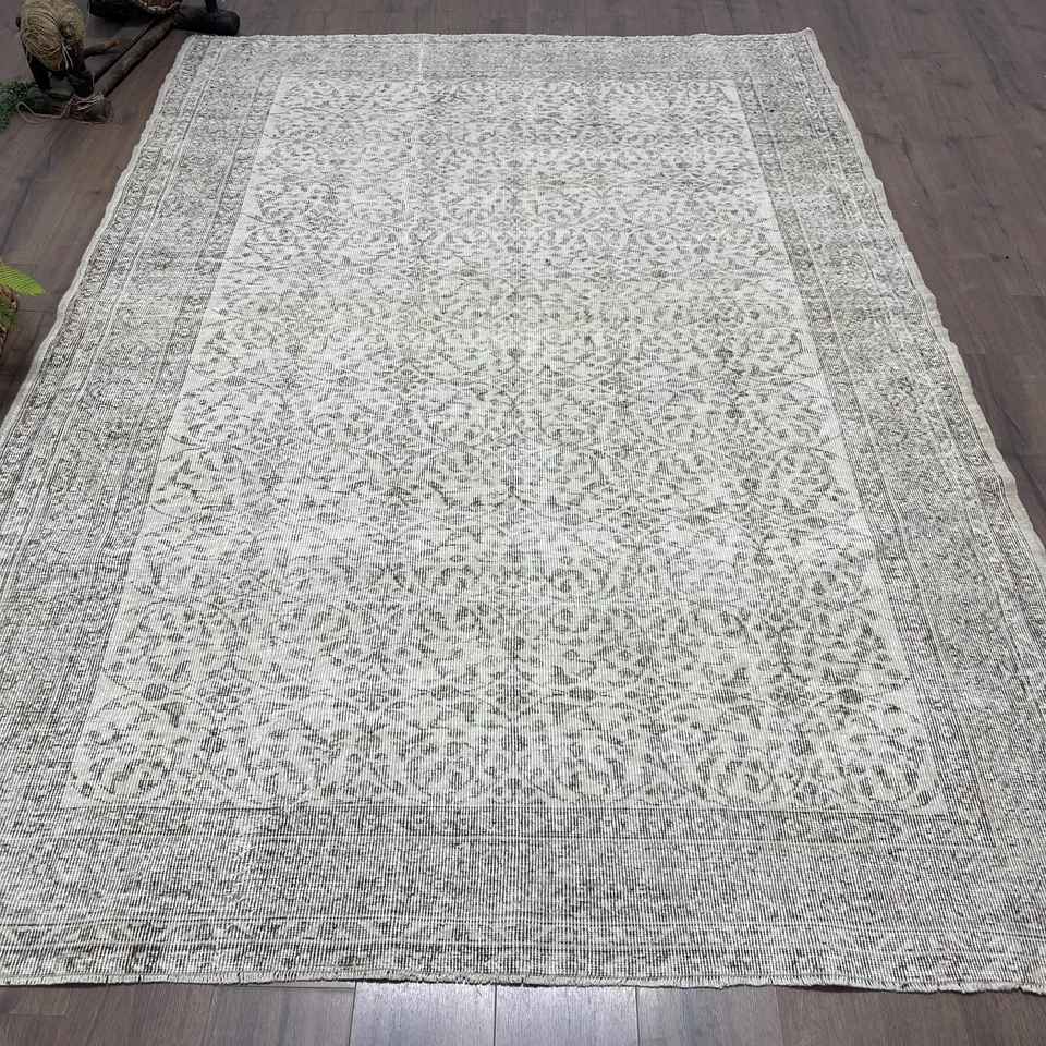 Tapis turc, tapis vintage 6,5x9,4 pieds, tapis oriental en laine gris