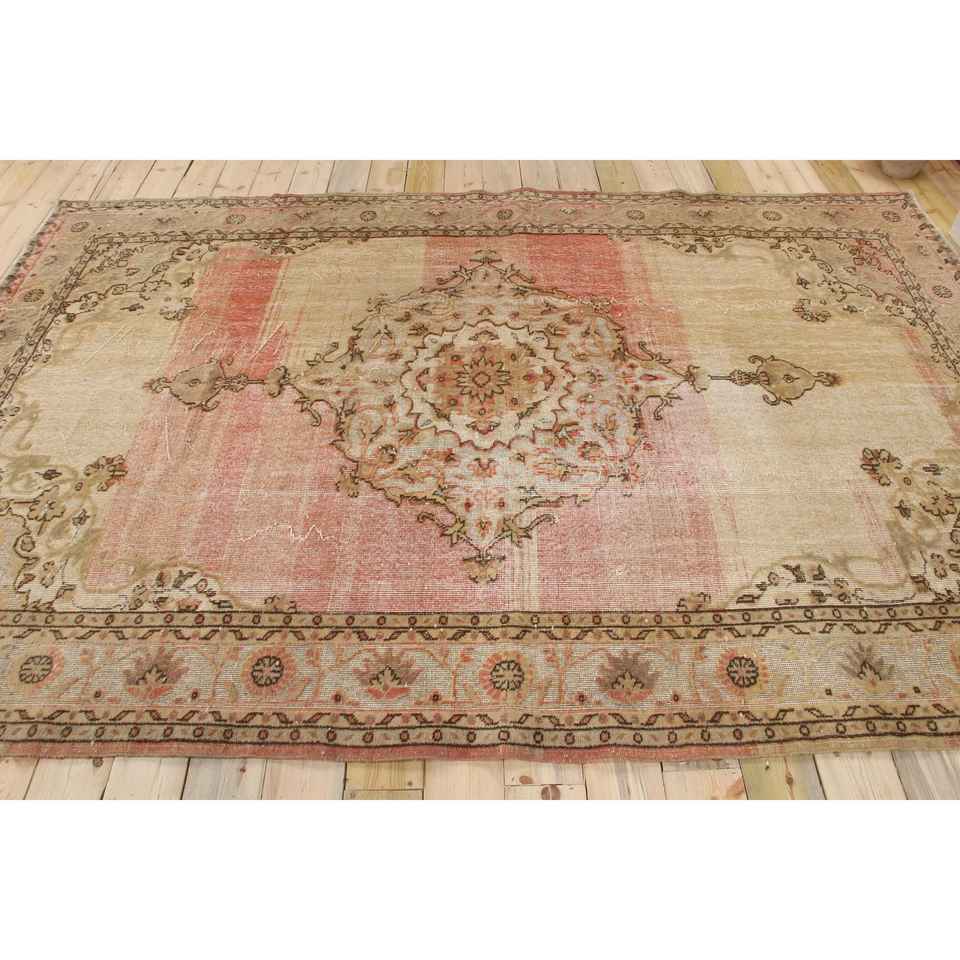 Tapis turc 6,7x10,2 pieds, tapis vintage en laine rouge brun à motifs floraux