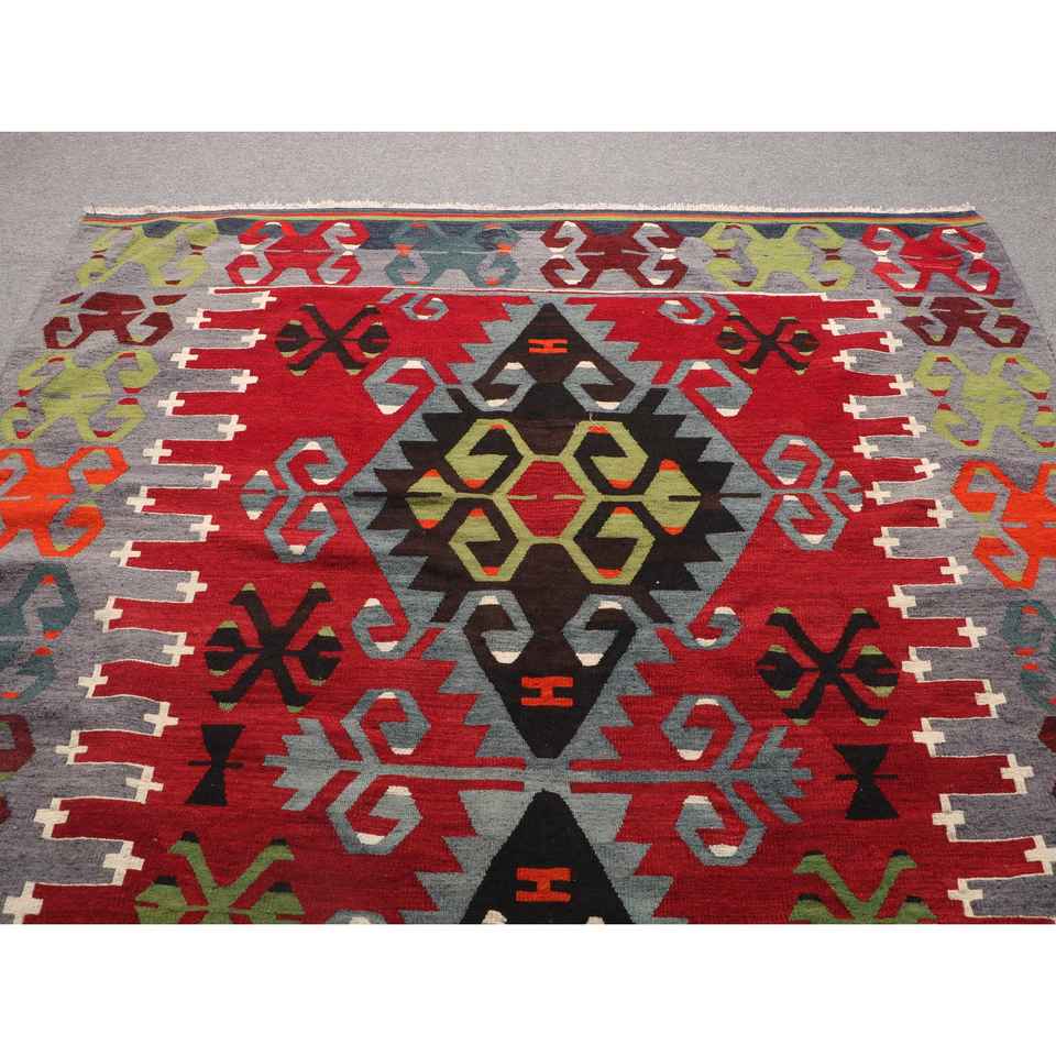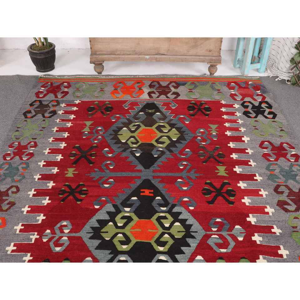 Tapis turc, grand tapis de 6x10,2 pieds, tapis en laine rouge et vert Kilim