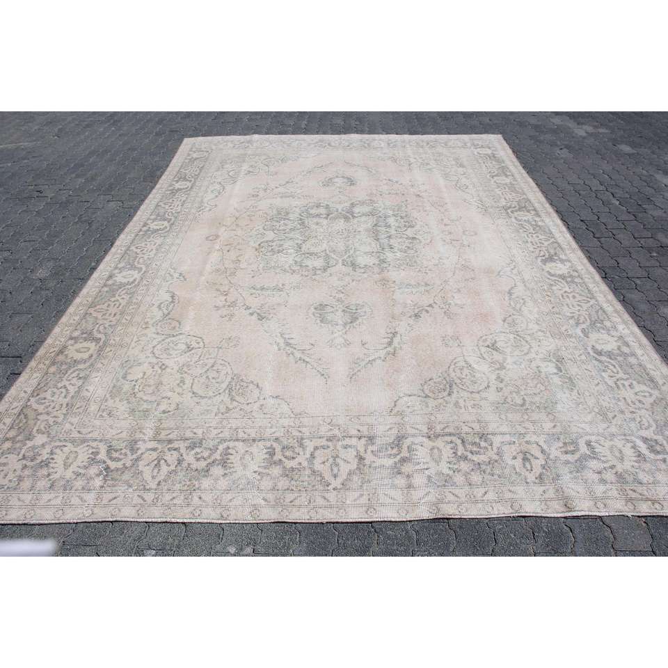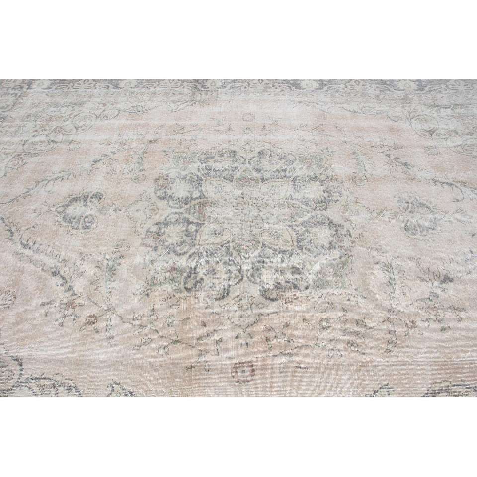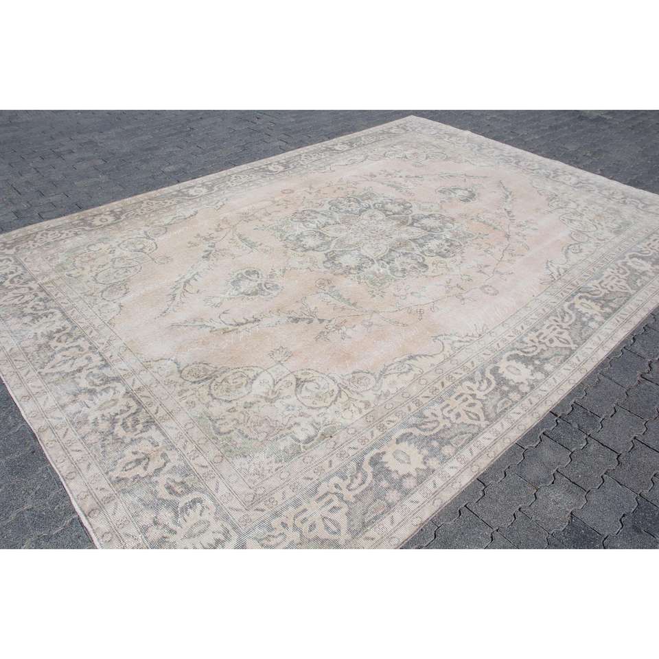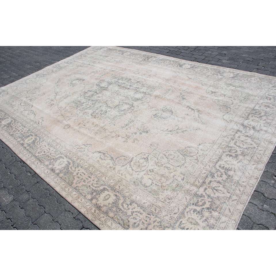 Tapis turc, tapis vintage 8,4x11,7 pieds, tapis en laine à bordures grises