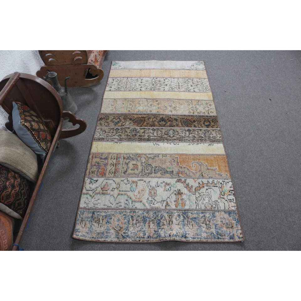 Tapis turc, tapis vintage Accent 3x5,7 pieds, tapis en laine Ikat marron bleu