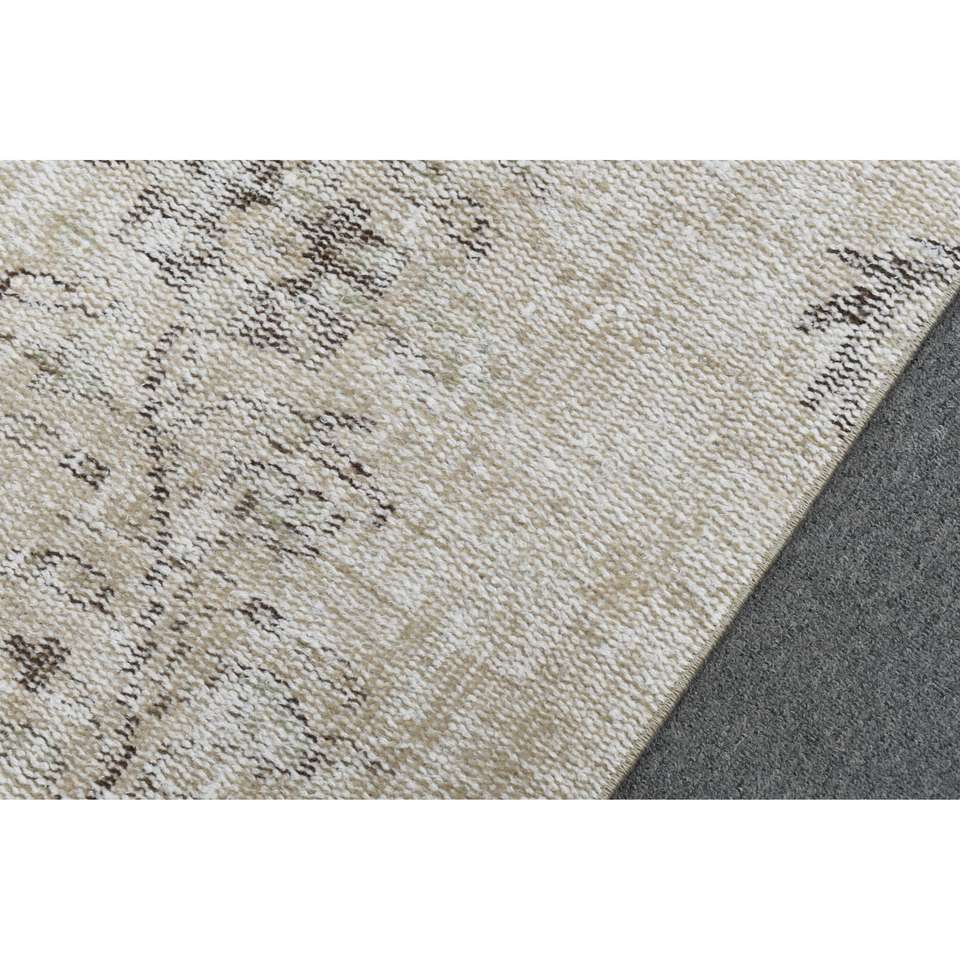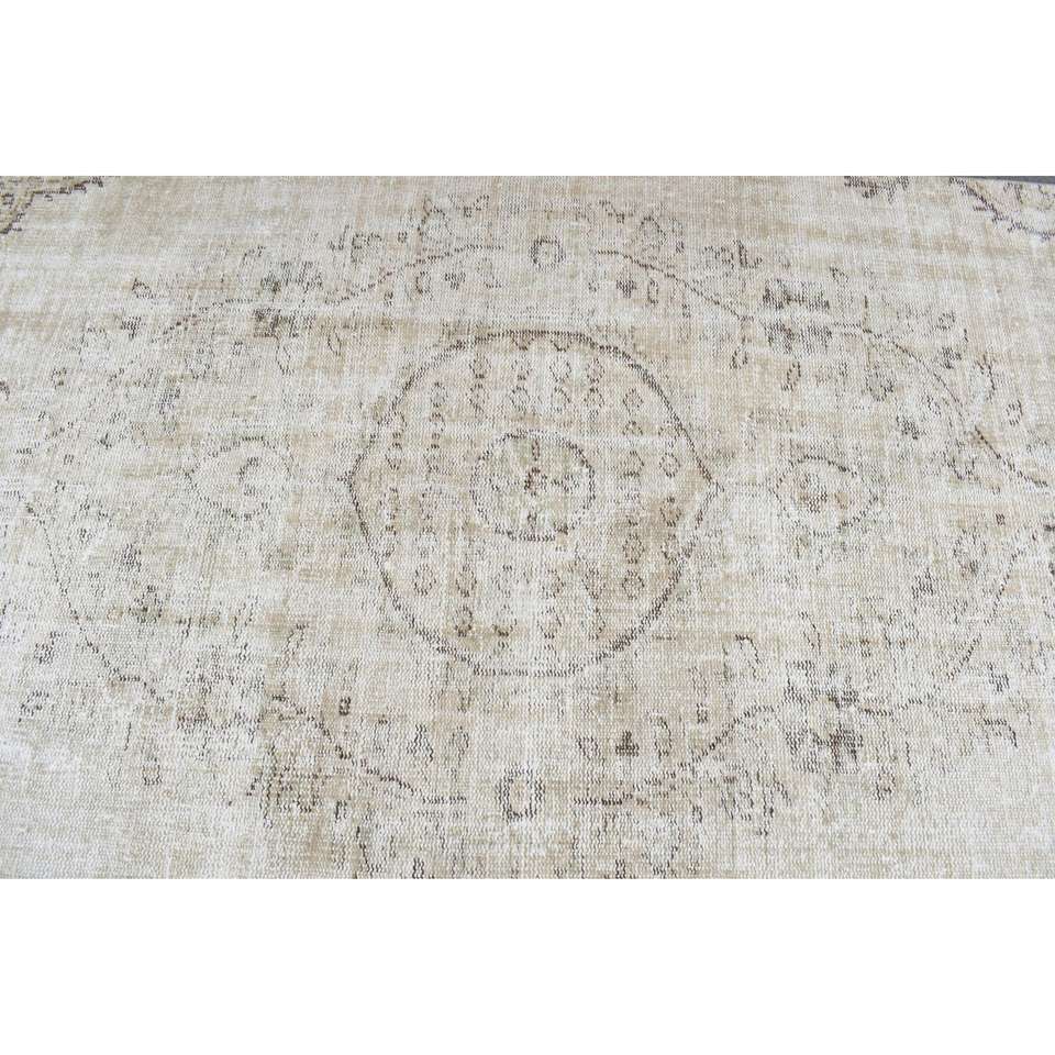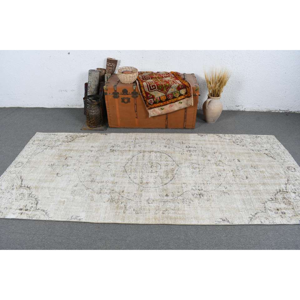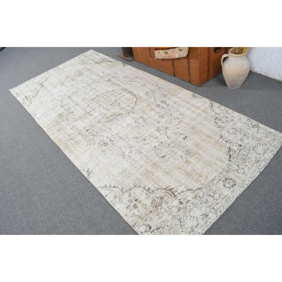 Tapis turc, tapis vintage de 3,9 x 8,8 pieds, tapis en laine blanc et gris à pois