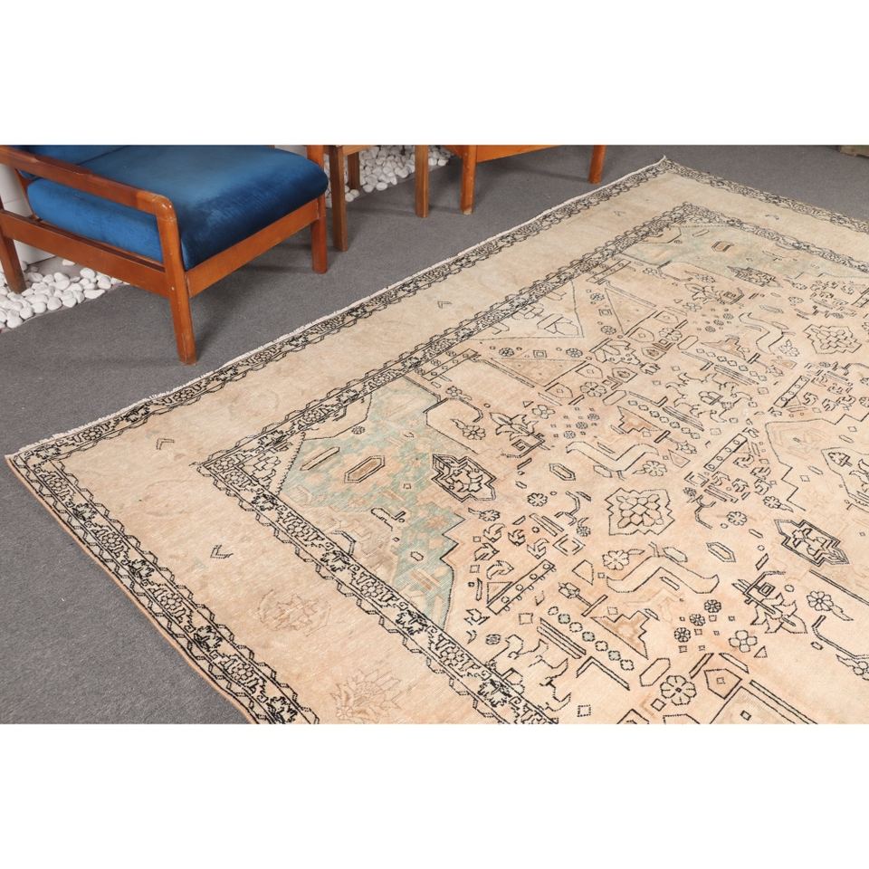 Tapis turc surdimensionné 10x12,4 pi (304x378 cm) en laine beige vintage patchwork avec envers en latex