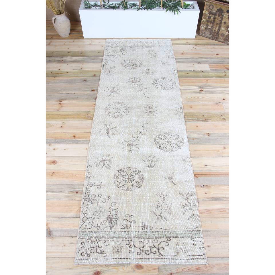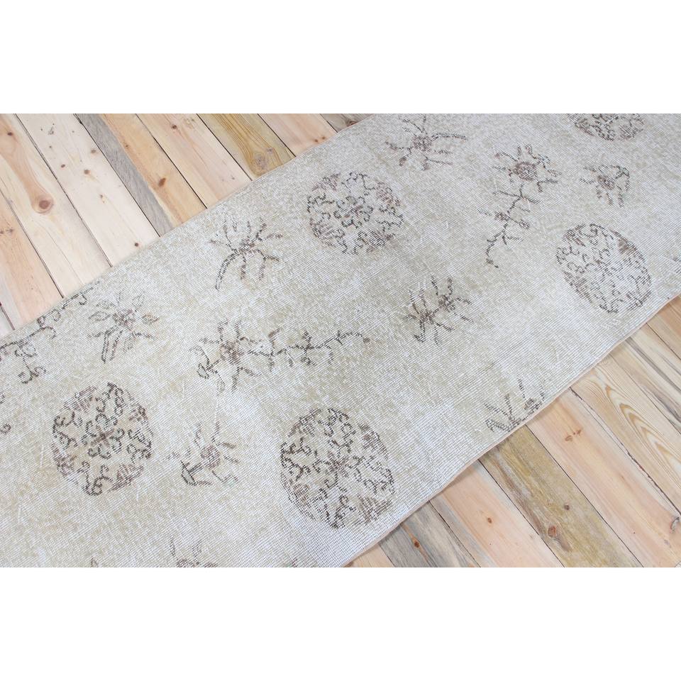 Tapis turc 3x9,5 pi (91x290 cm), tapis vintage marron à motifs floraux