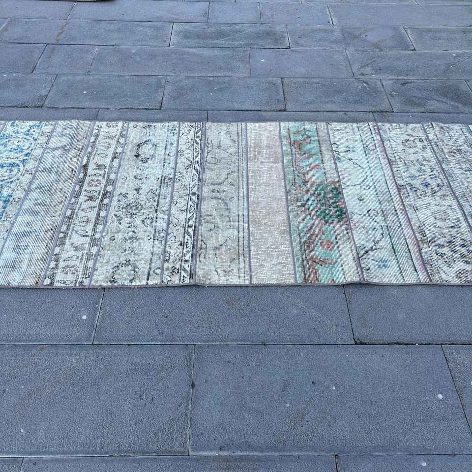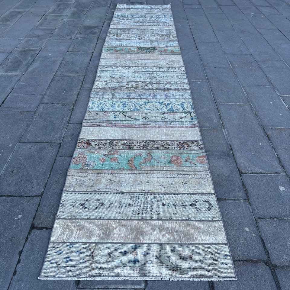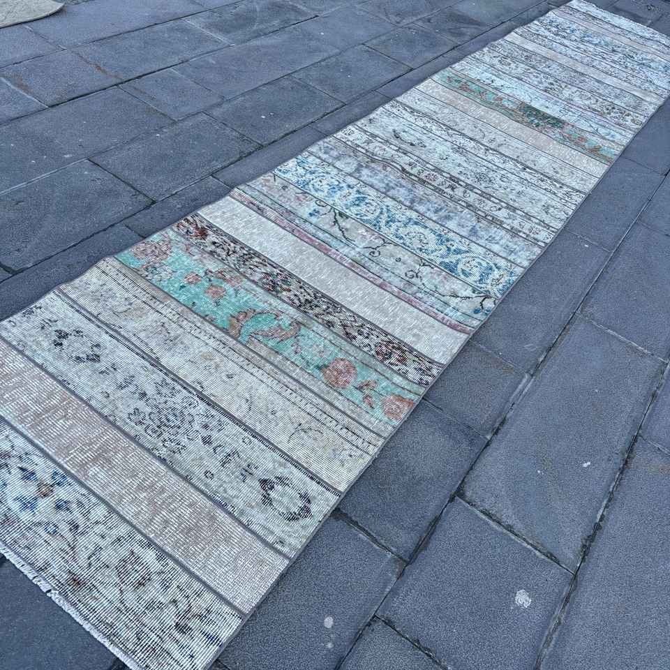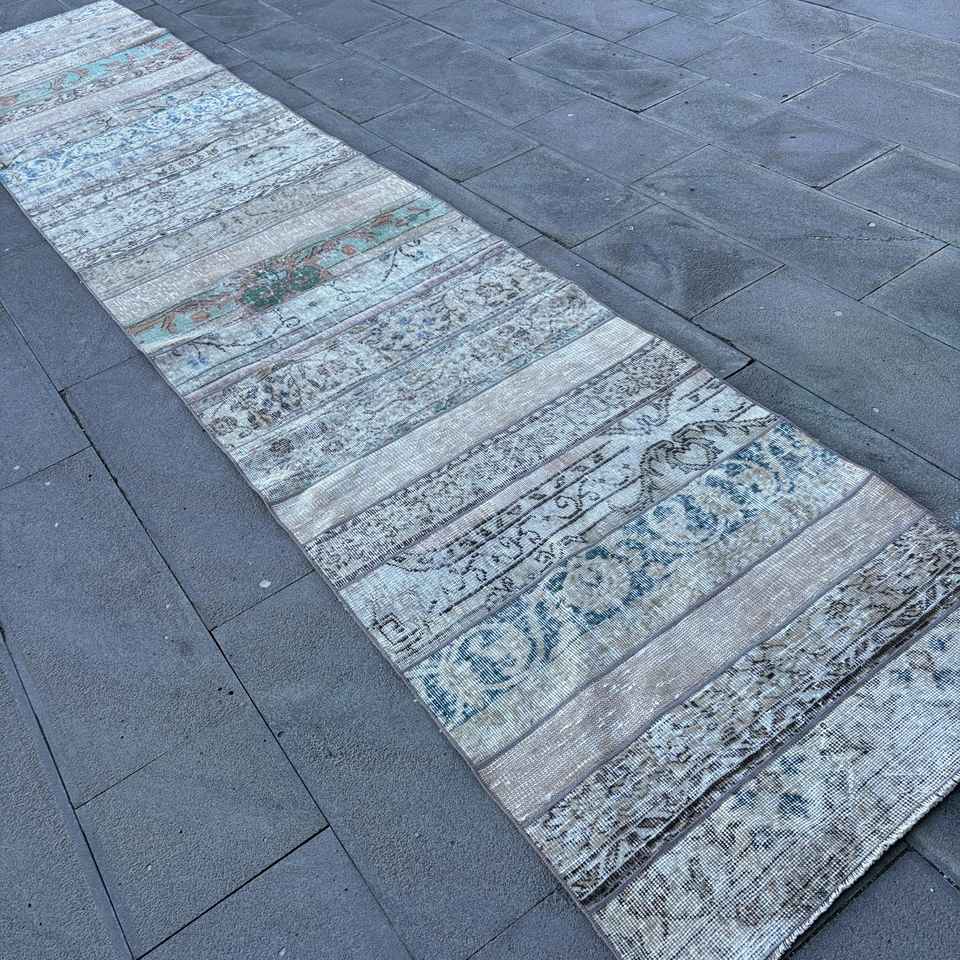 Turkish Rug, Runner 3x15.1 ft Rug, Blue Abstract Rug