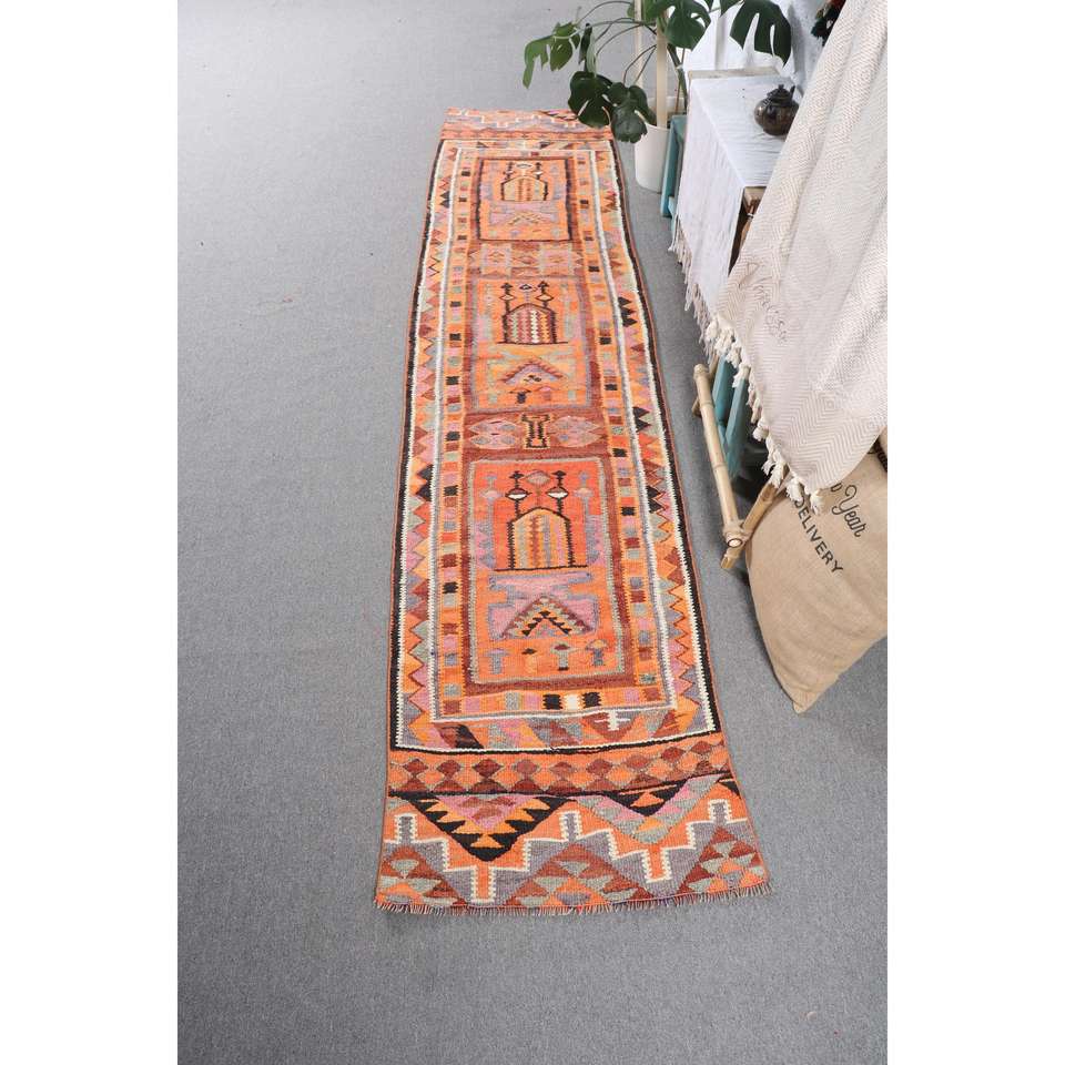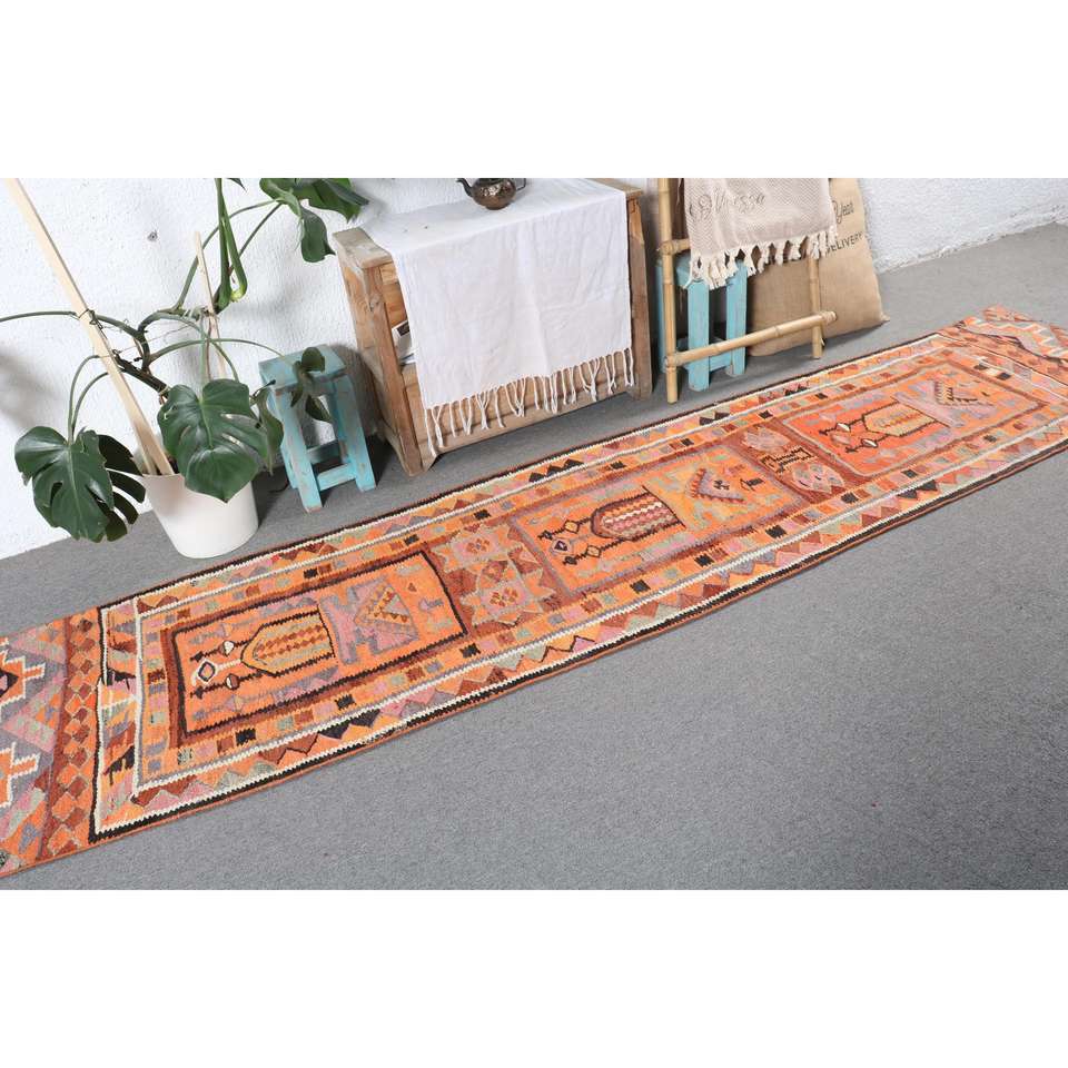 Tapis turc Kilim vintage 2,4x10,9 pieds, tapis persan en laine orange