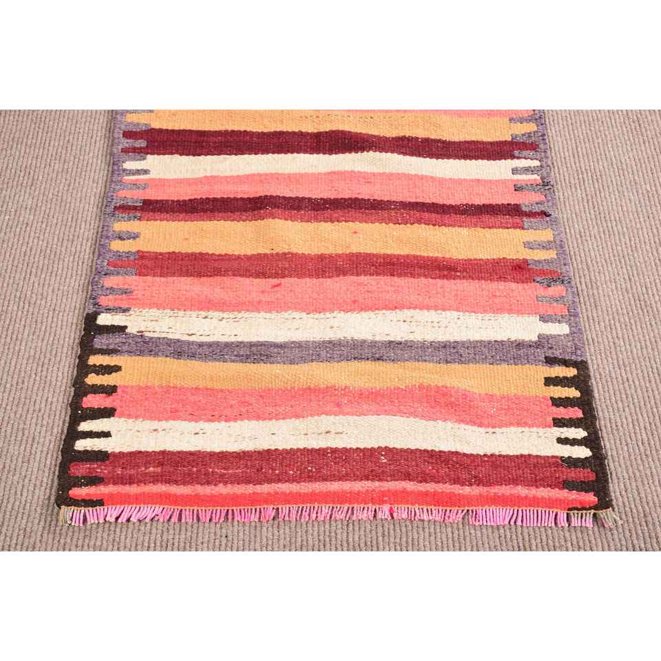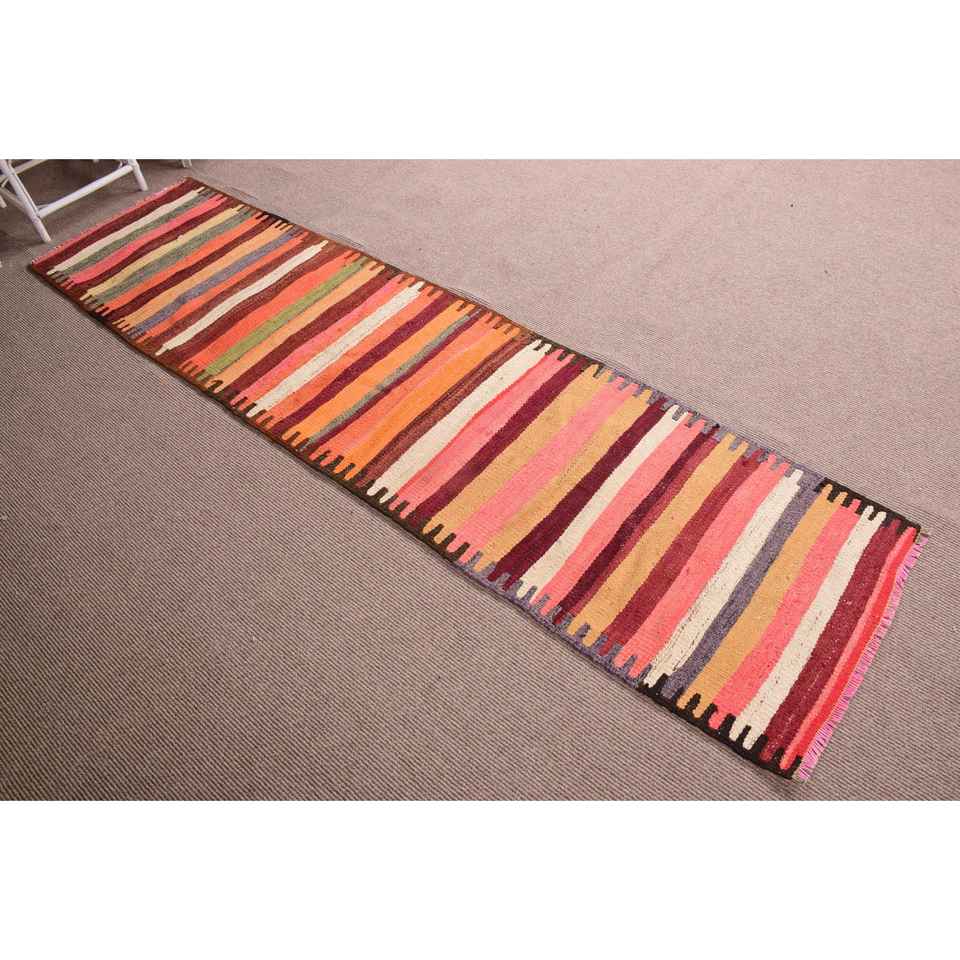 Tapis turc Kilim vintage 2,6x10,3 pieds, tapis persan en laine rouge