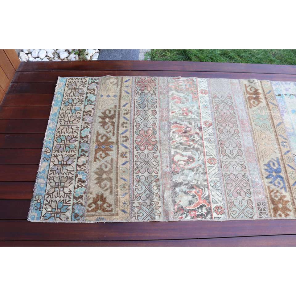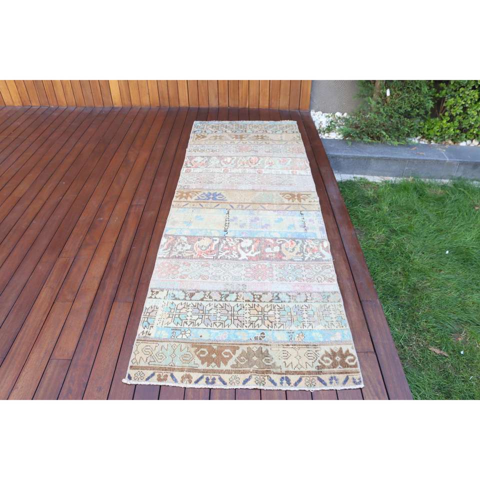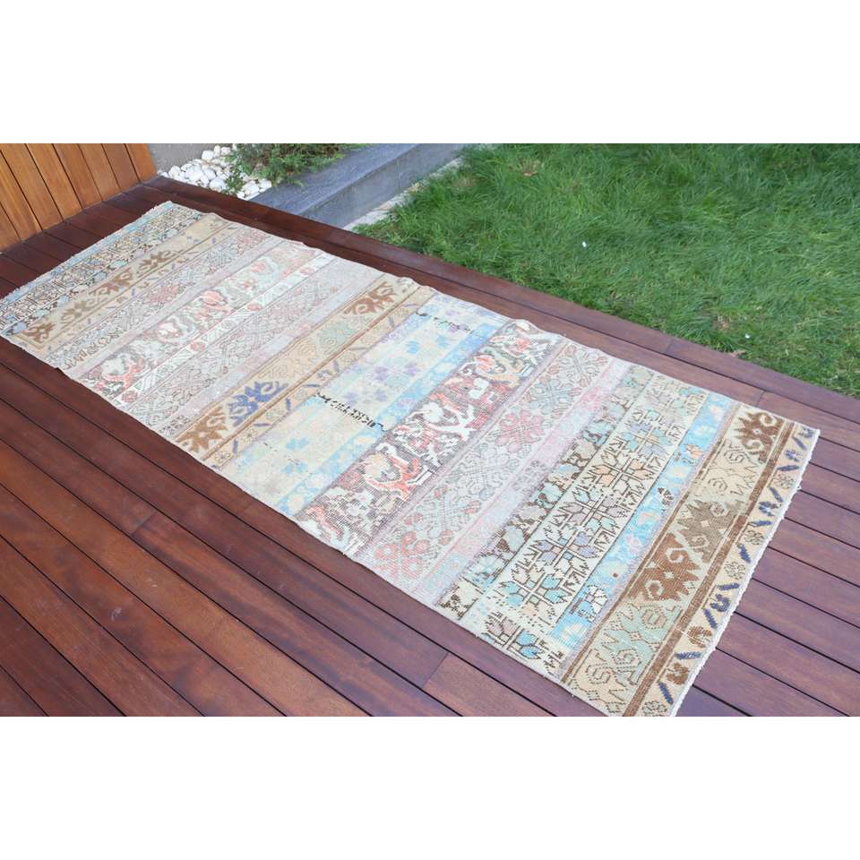 Tapis turc 2,9x8,2 pi (89x250 cm), tapis en laine vintage bleu à bordures