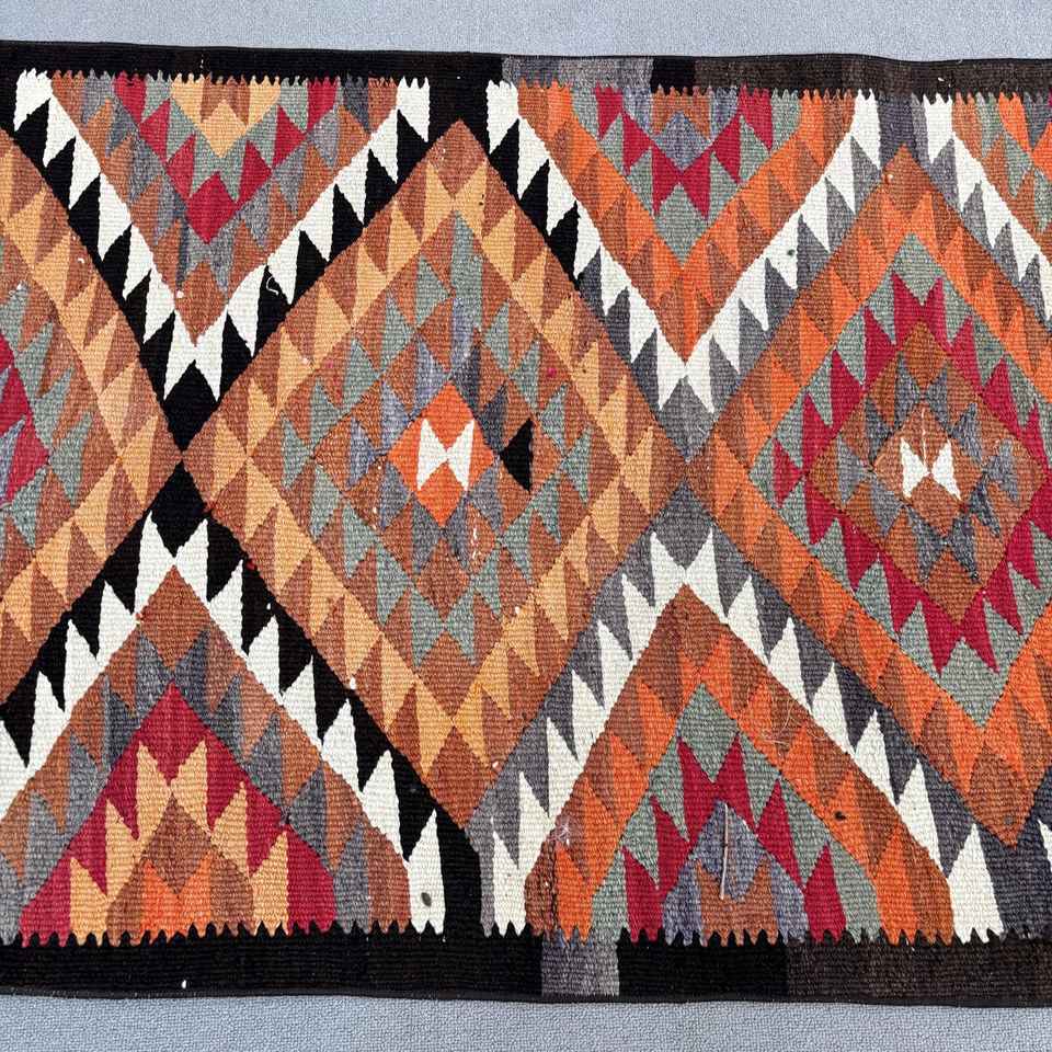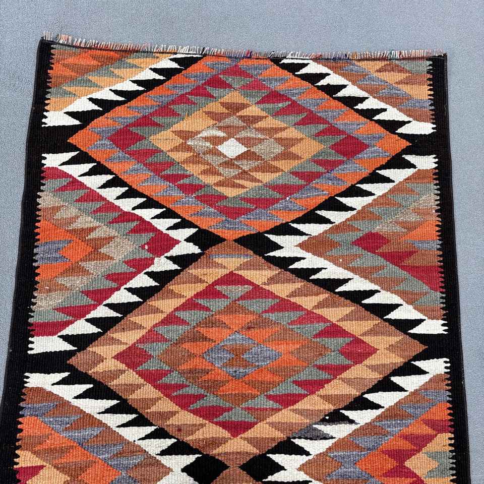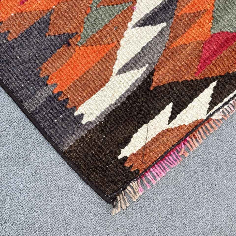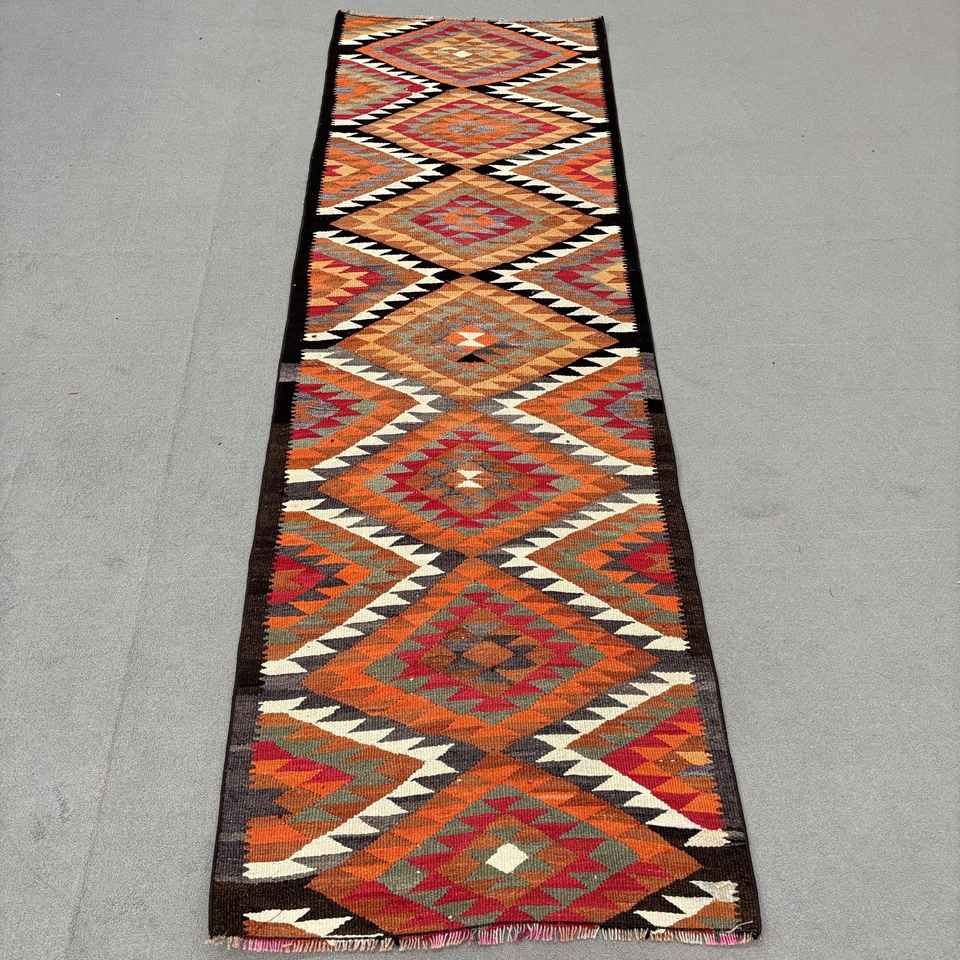 Tapis turc, tapis vintage 3x9,6 pieds, tapis en laine kilim orange