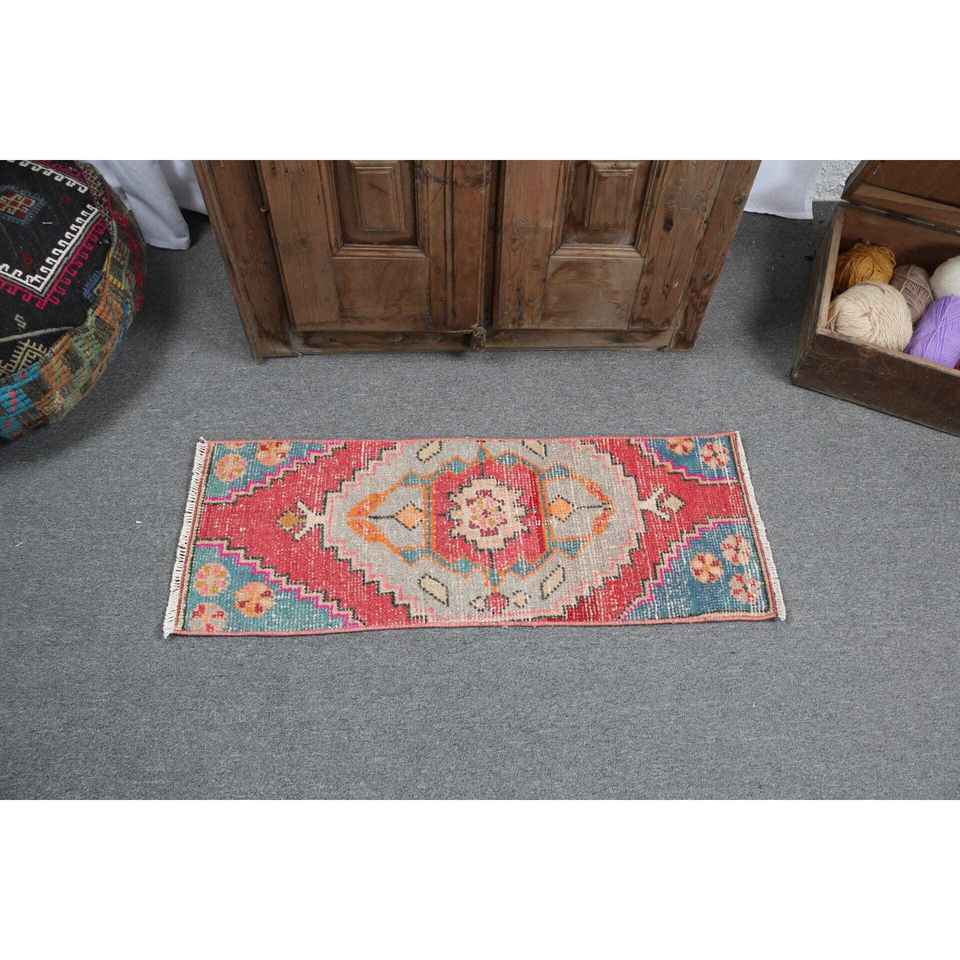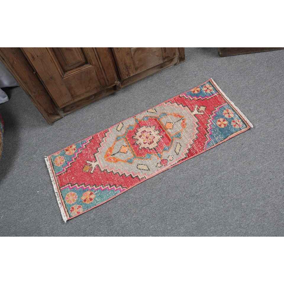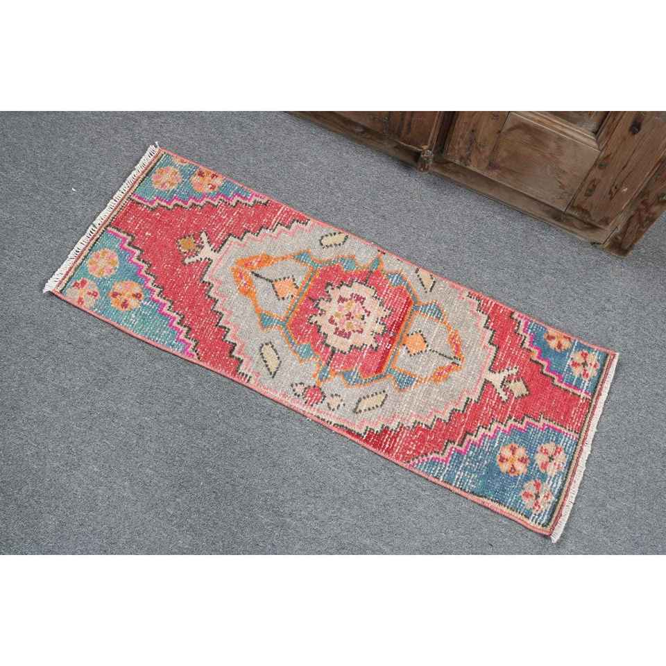 Petit tapis turc 1,2x3,2 pi (37x96 cm), tapis marocain rouge vintage