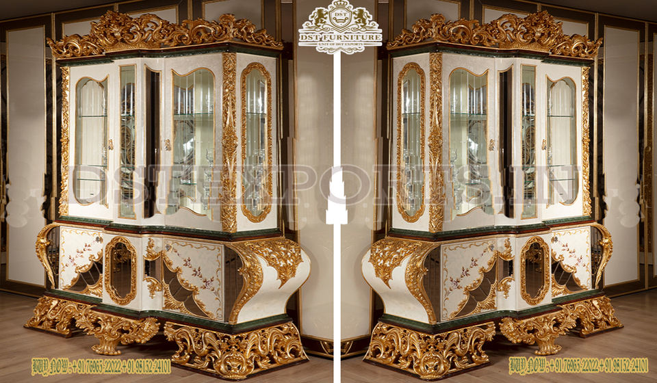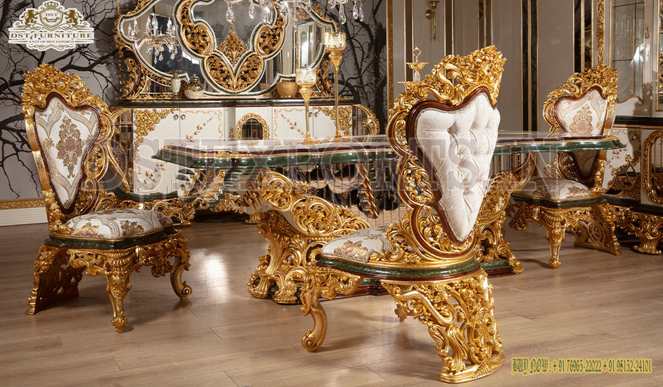 Turkish Style Heavy Carved Dining Room Furniture Six Seater Luxury Baroque Dining Table Set Golden Finish Stylish Dining Room