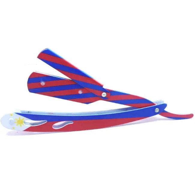 Rasoir de barbier pliant en acier inoxydable de style turc, bleu, à lame droite, outil d'épilation à lame unique