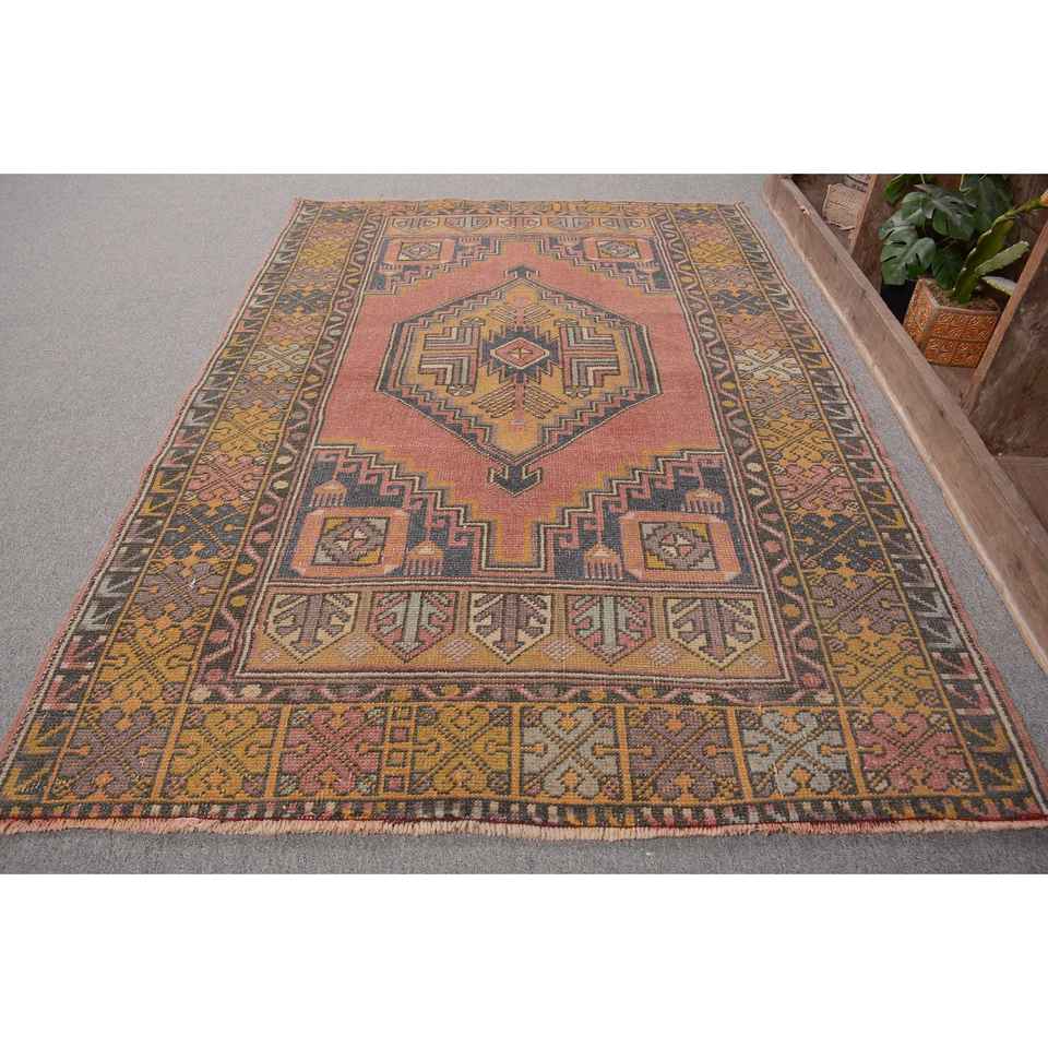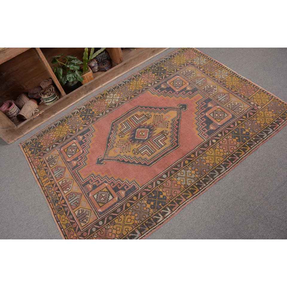 Tapis d'appoint vintage turc 3,7x5,4 pieds, tapis persan rouge en laine