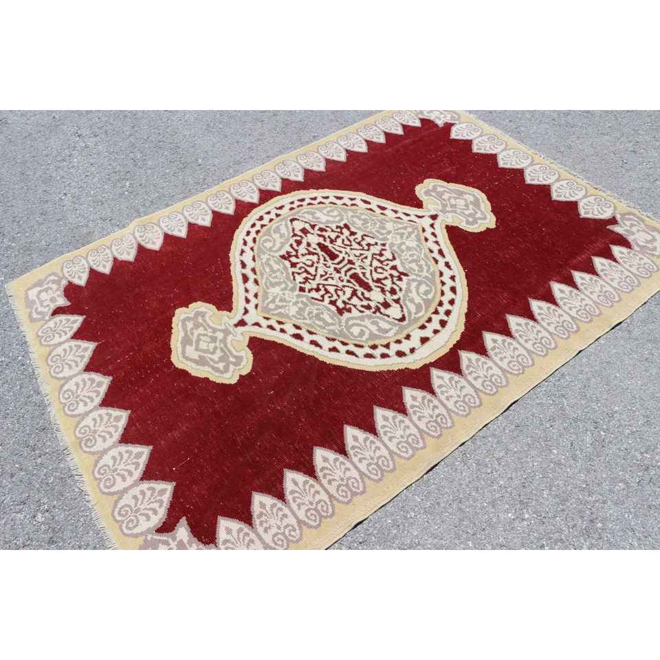 Tapis turc vintage 4,6x6,4 pieds, tapis en laine rouge