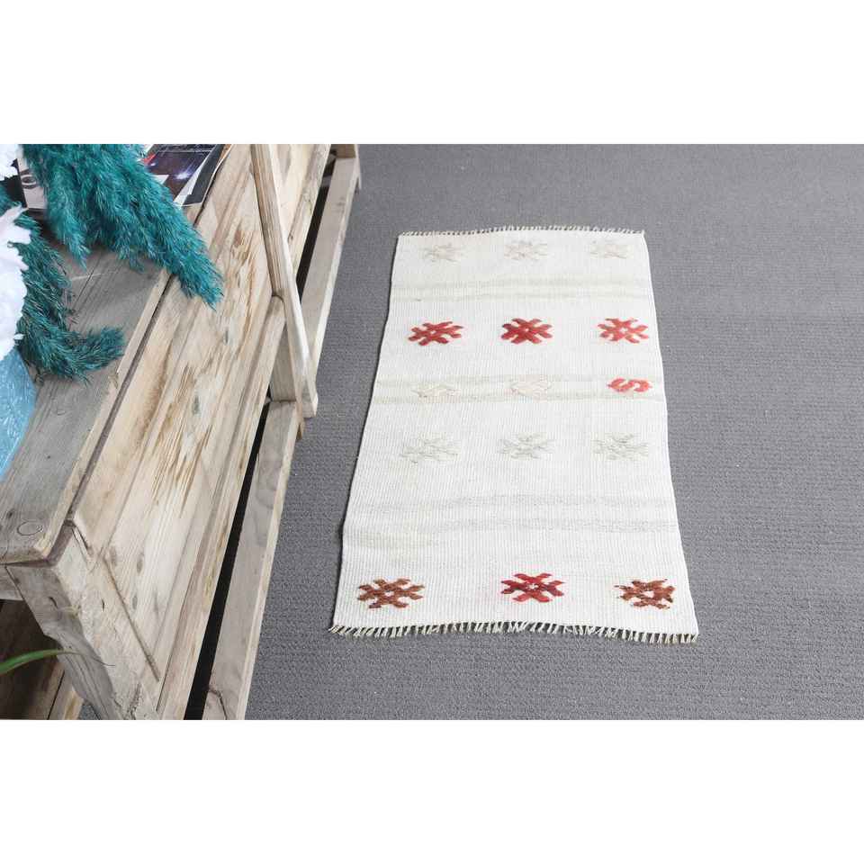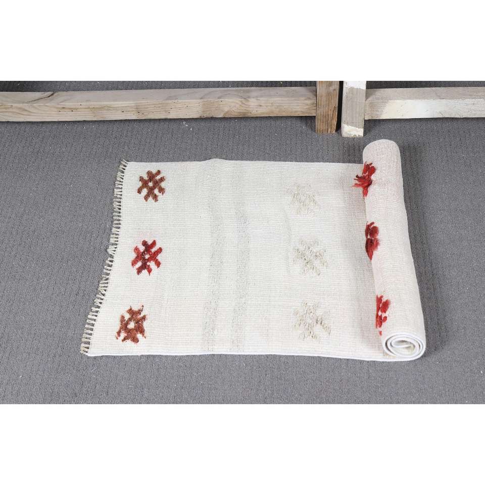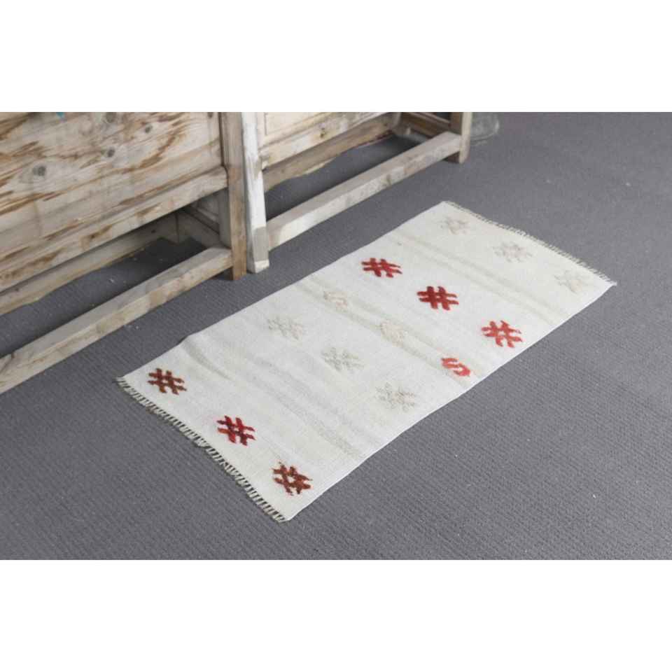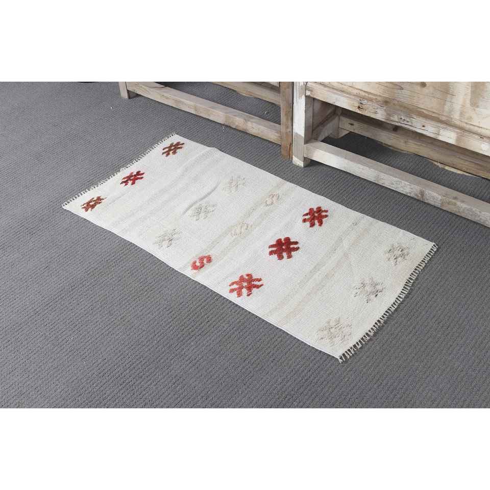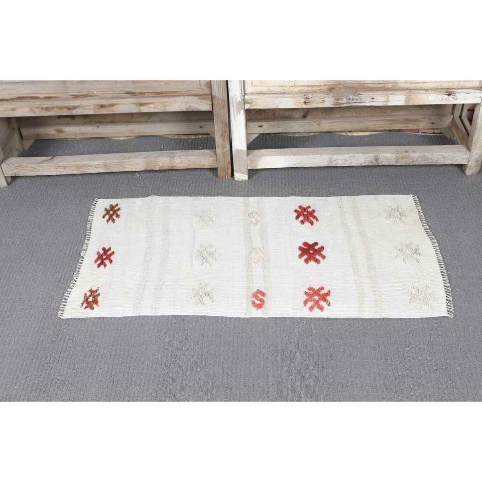 Petit tapis turc vintage Kilim 1,7x3,2 pieds, tapis blanc du sud-ouest en laine