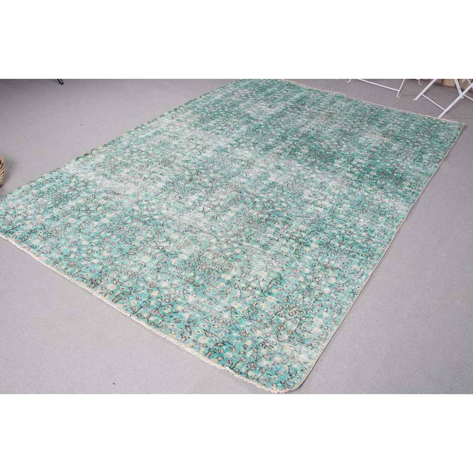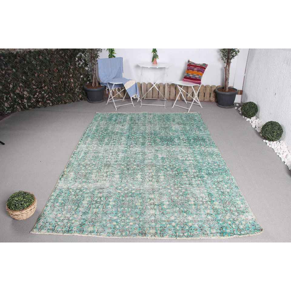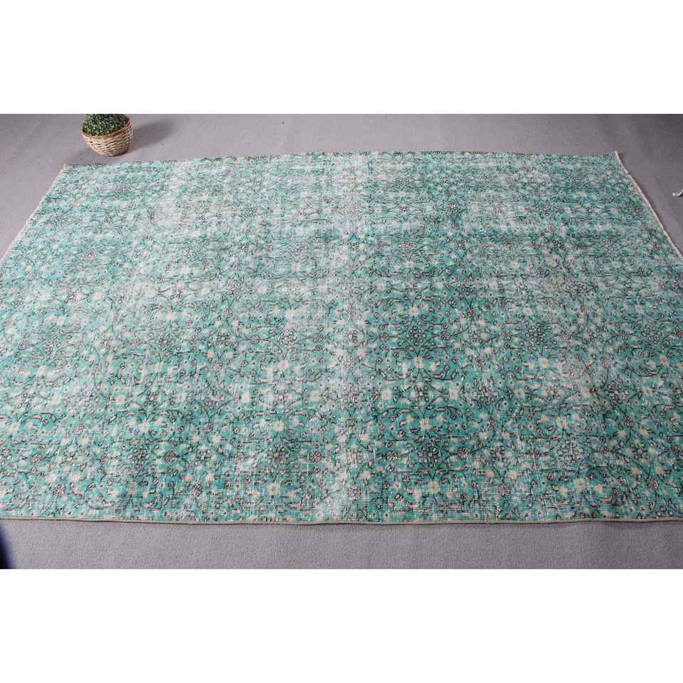 Grand tapis turc vintage 5,6x8,5 pieds, tapis en laine bleue