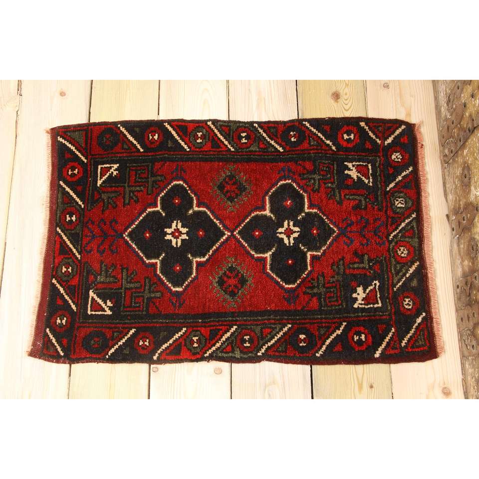 Tapis turc vintage, petit tapis de 1,6 x 2,4 pieds, tapis en laine patchwork rouge et noir