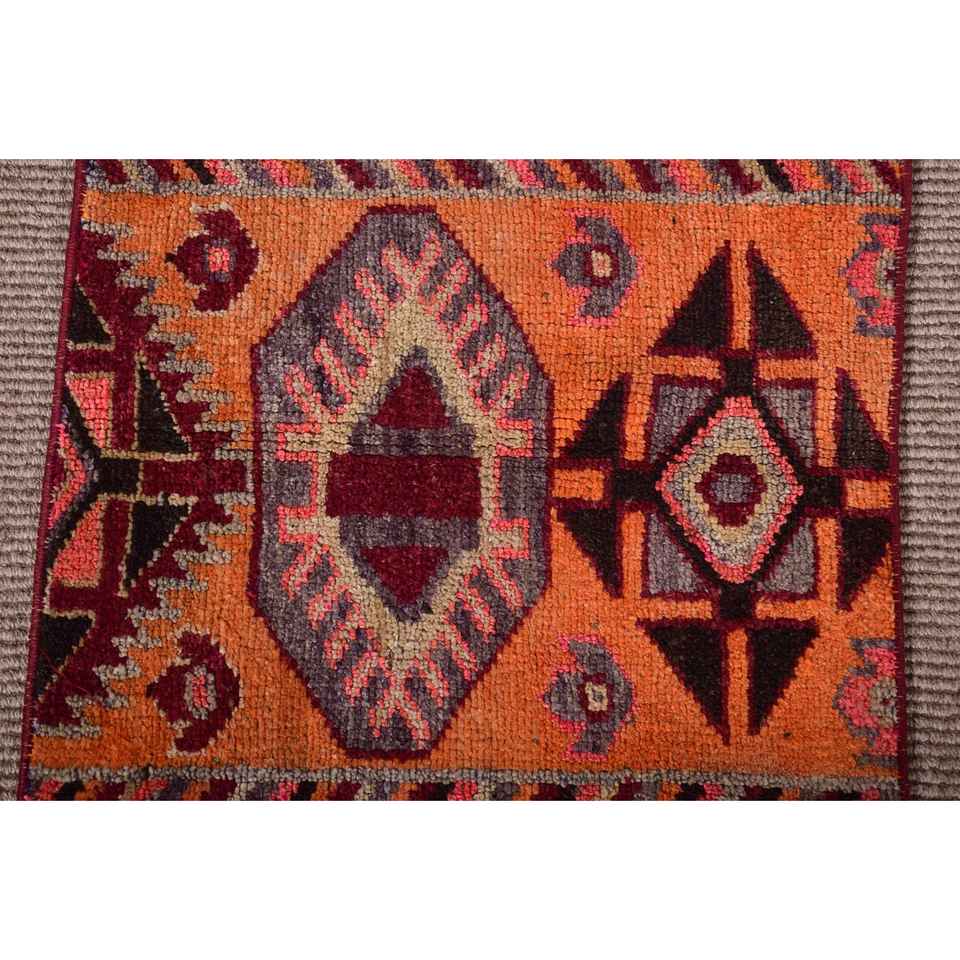 Tapis turc vintage, petit tapis de 1,7 x 2,2 pieds, tapis oriental en laine rouge orangé