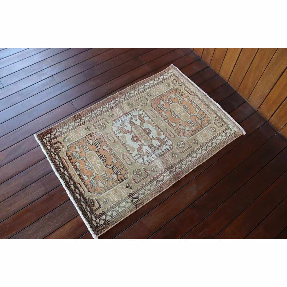 Tapis turc vintage, petit tapis de 2,2x3,3 pieds, tapis marron à motifs floraux
