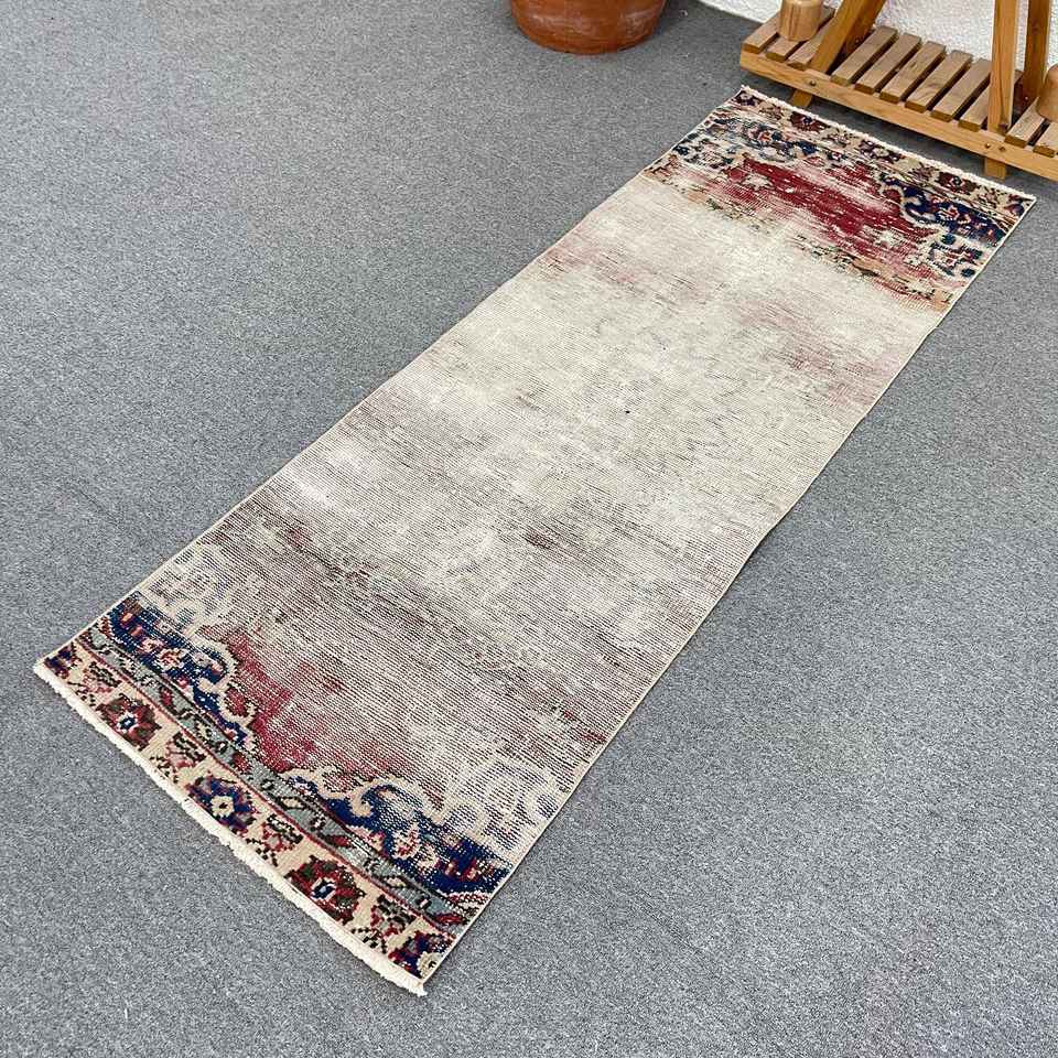 Tapis turc vintage 2,3x6,3 pi (69x191 cm), tapis en laine rouge camouflage