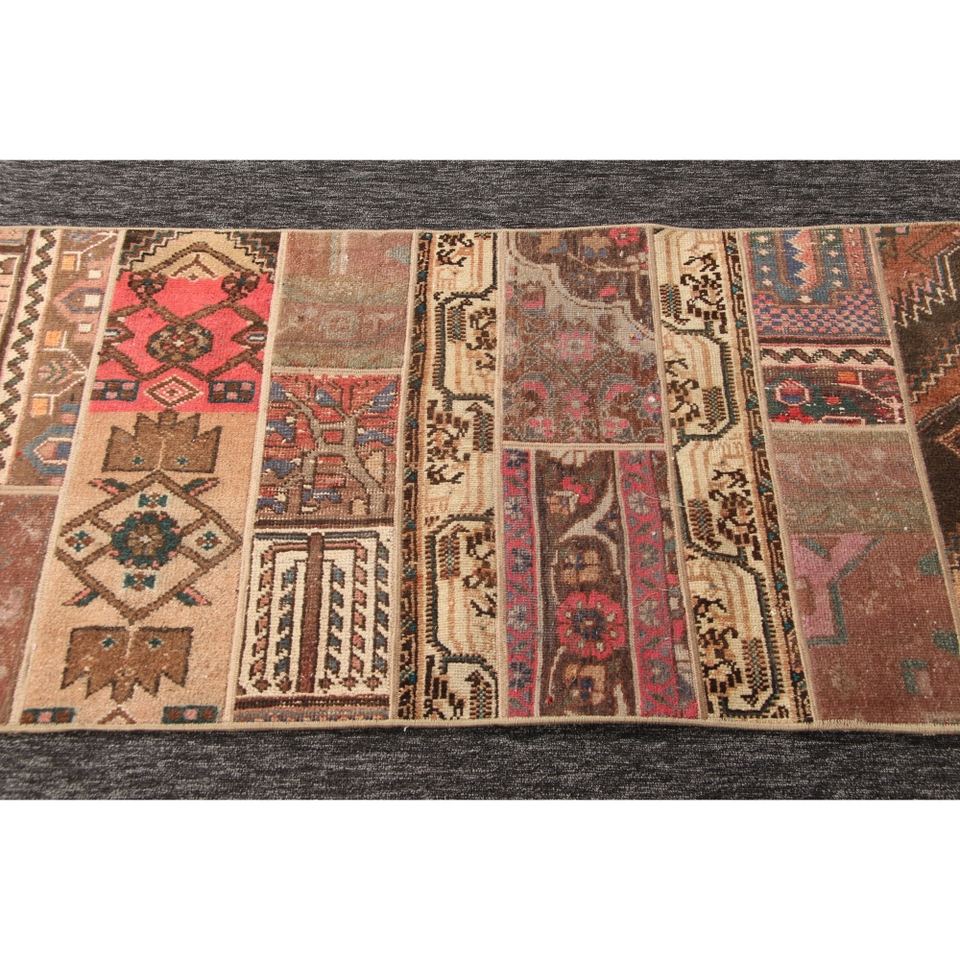 Turkish Vintage Rug, 2.4x7.1 ft Patchwork Rug, Brown Small Geometric Rug