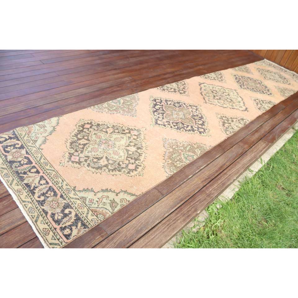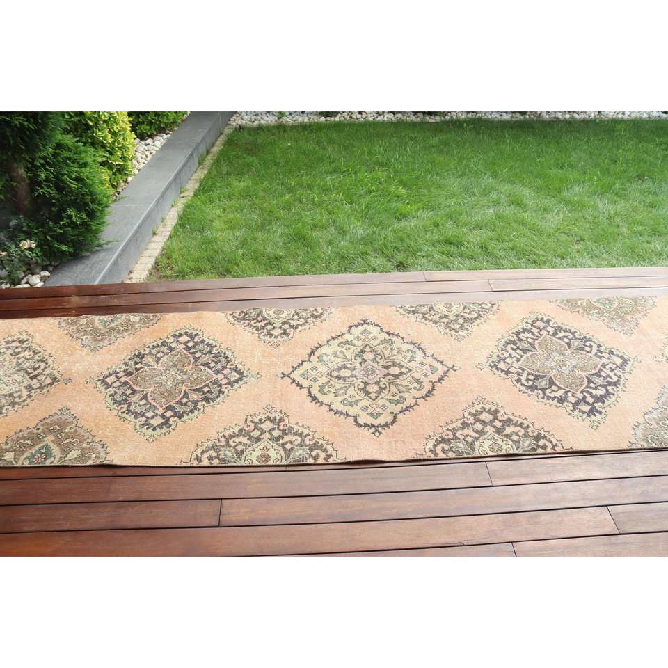 Tapis turc vintage 2,8x13,5 pi (85x410 cm), tapis oriental en laine marron