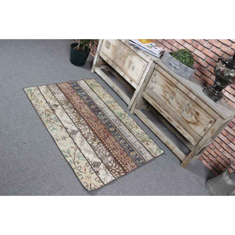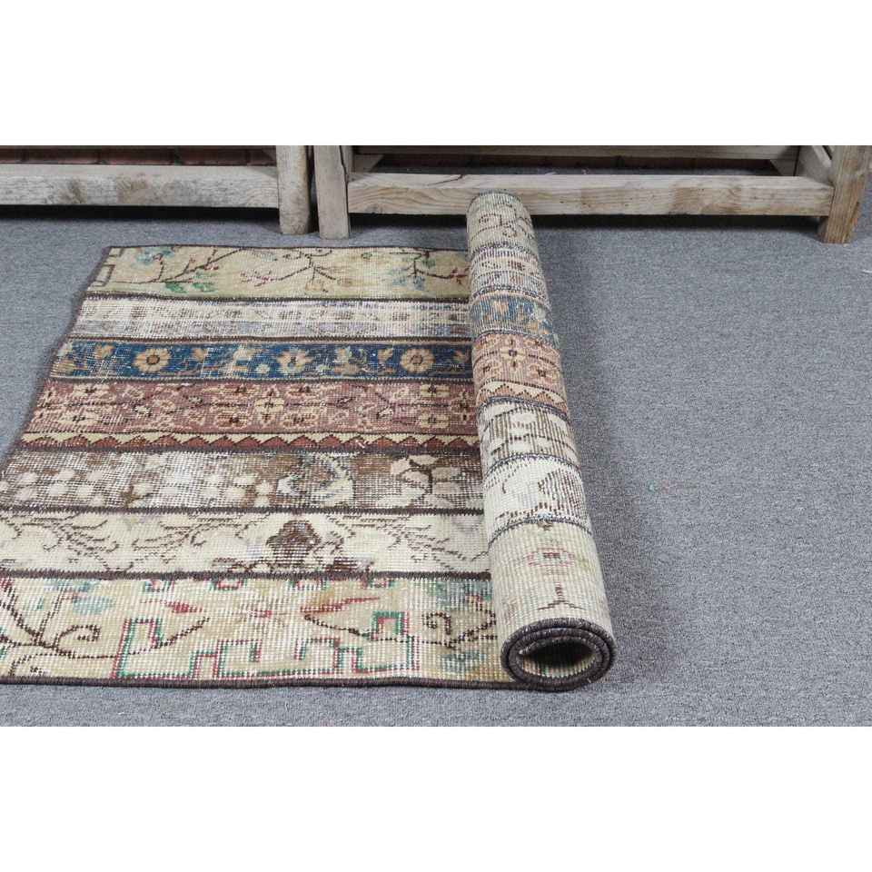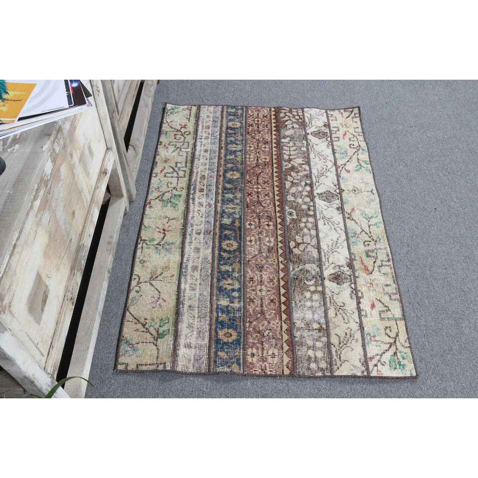 Tapis turc vintage, tapis de 2,8 x 4 pieds, tapis marron bleu à motifs floraux