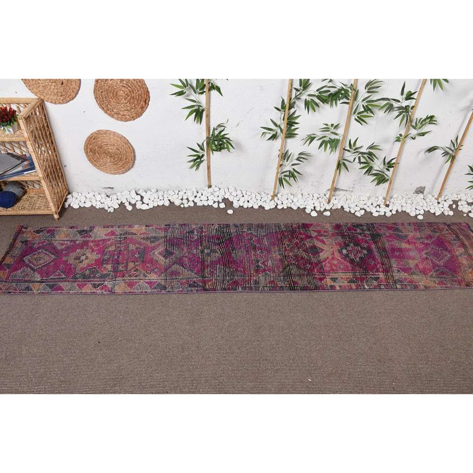 Tapis turc vintage 2x10,7 pieds, tapis persan en laine rose Herki