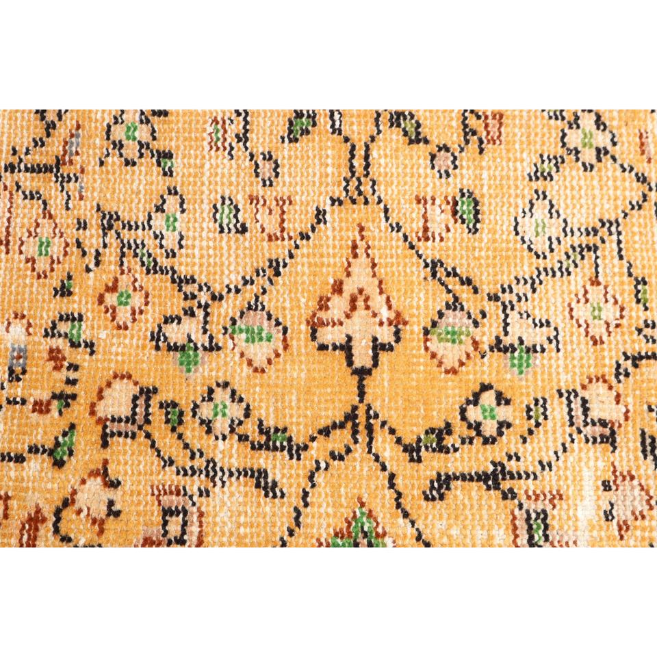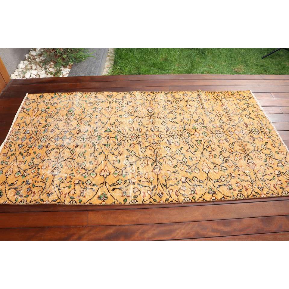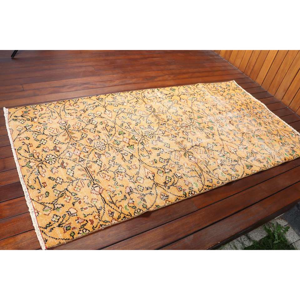 Tapis turc vintage 3,3x6,3 pi (102x193 cm), tapis oriental en laine jaune