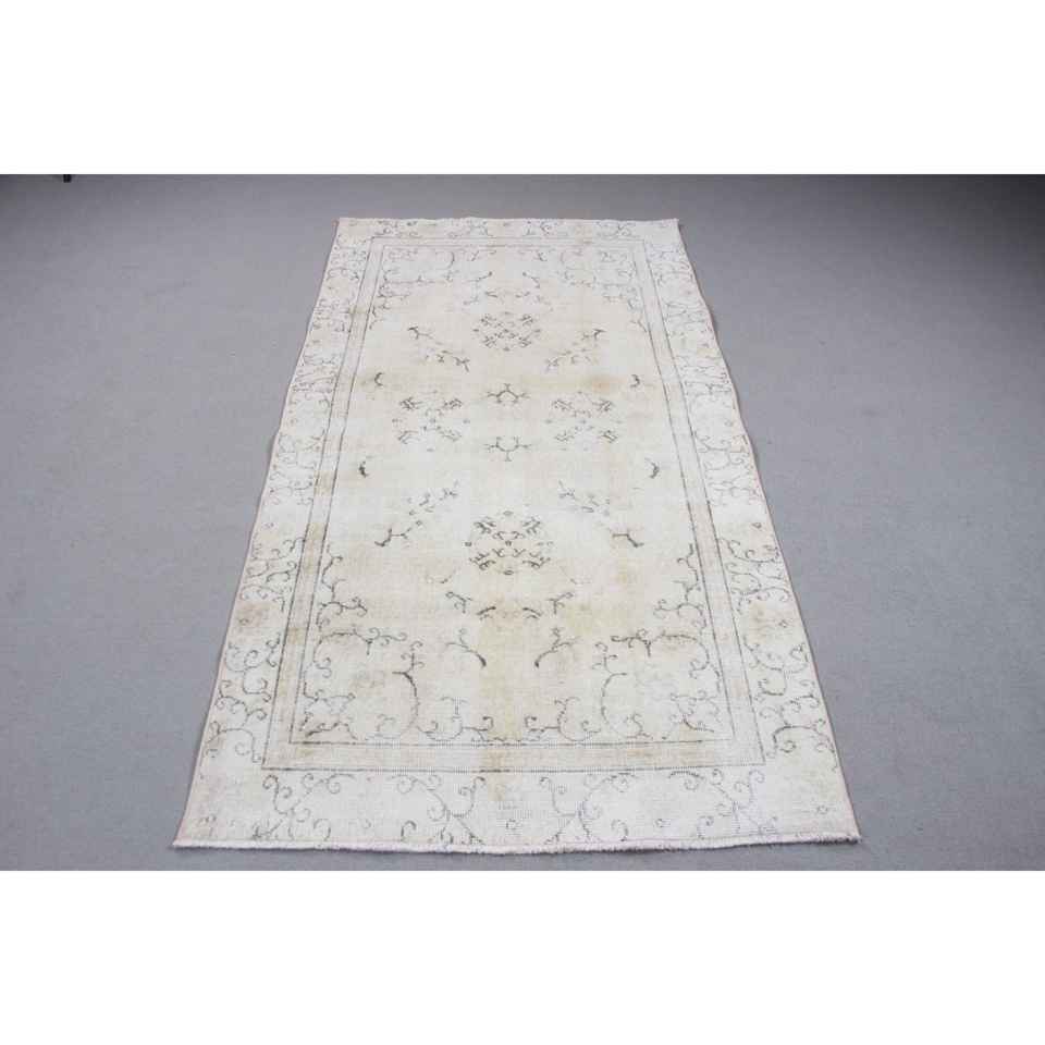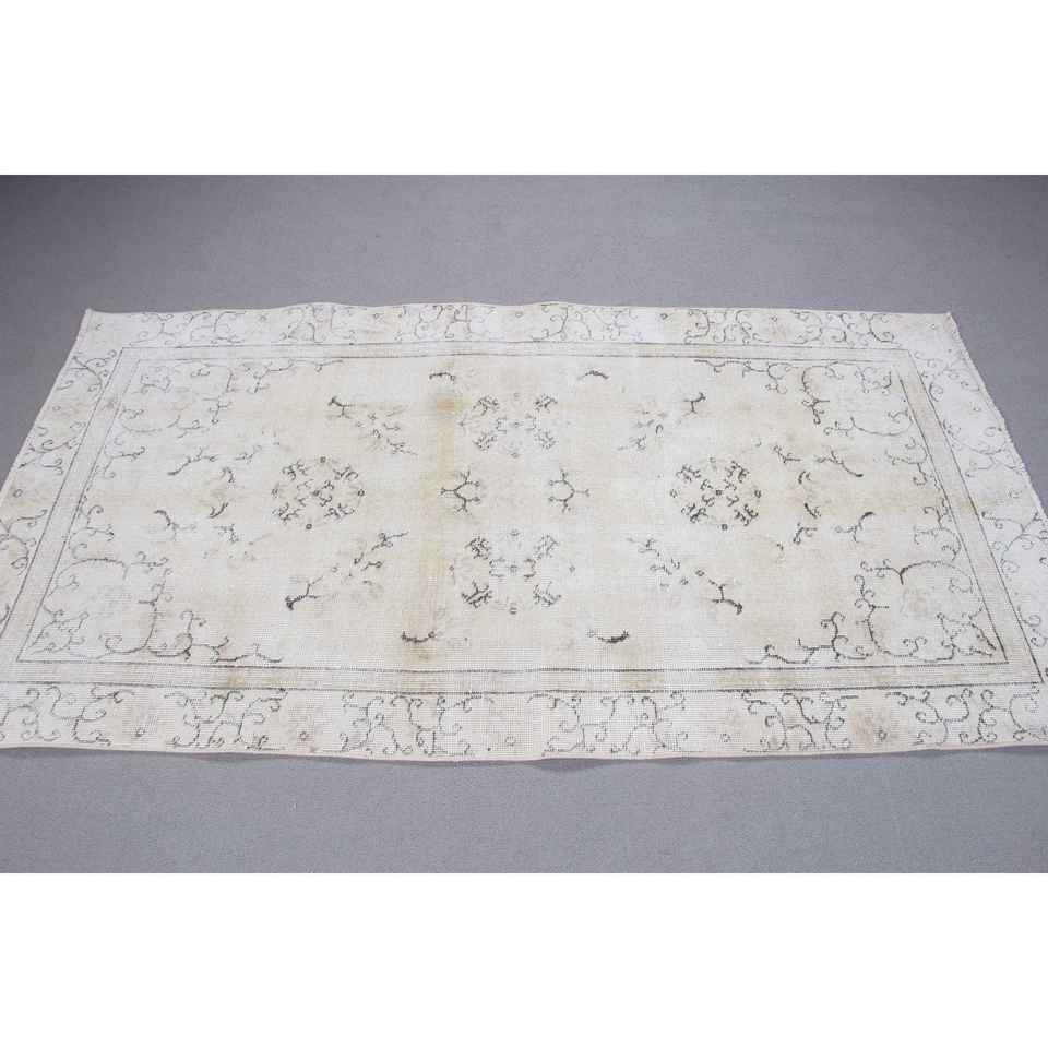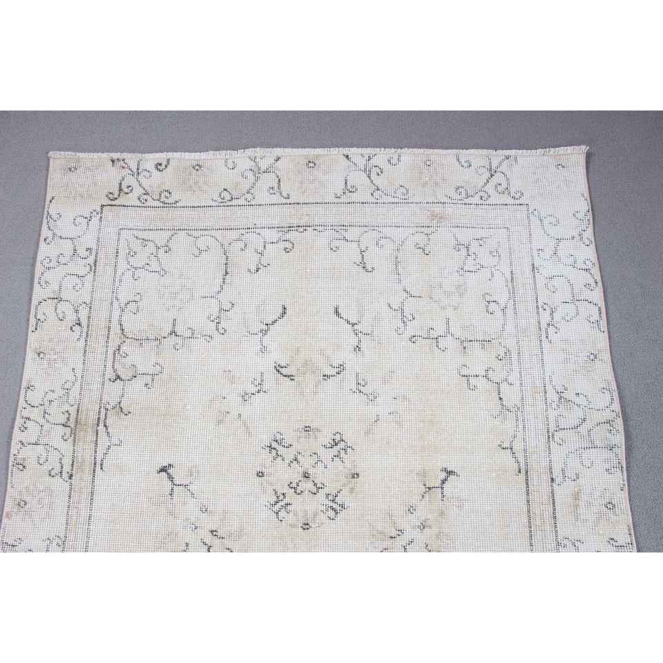 Tapis turc vintage 3,5x6,6 pieds, tapis oriental en laine blanche