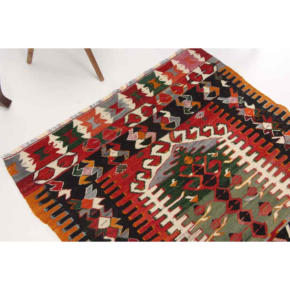 Tapis turc vintage 3,7x4,3 pi (113x130 cm), tapis en laine rouge à imprimé animal