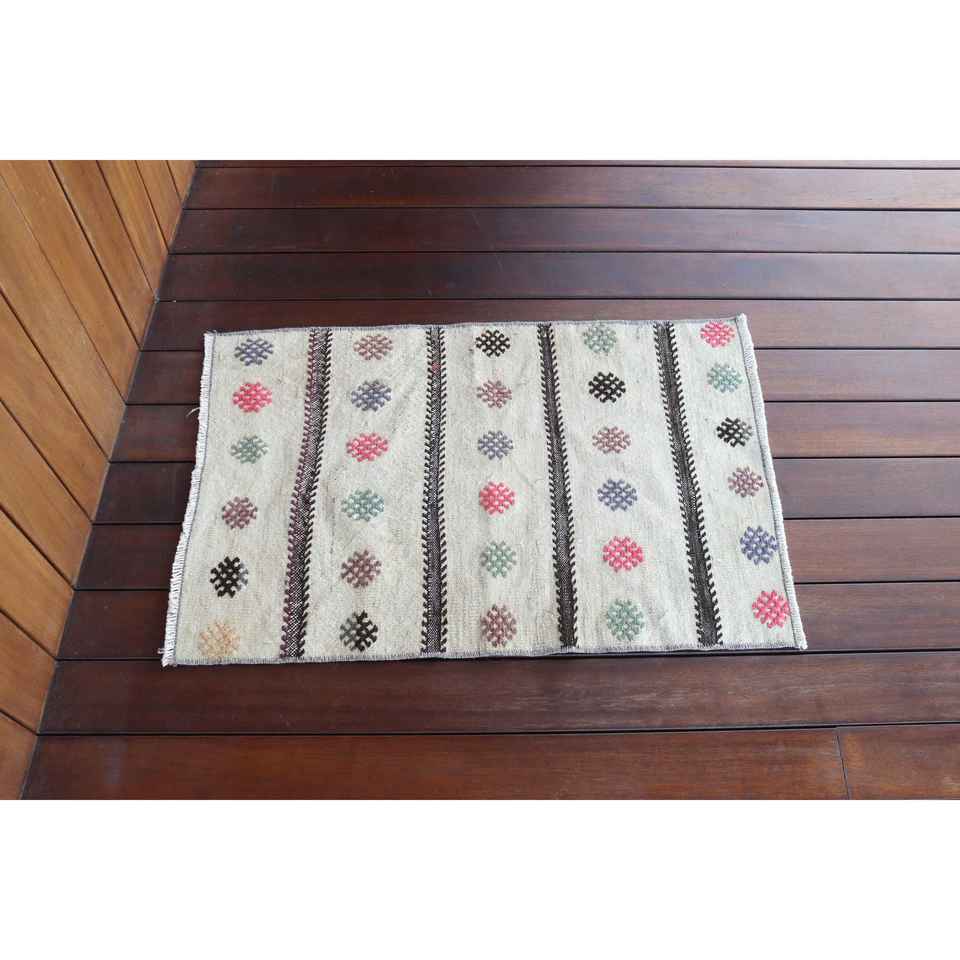 Tapis turc vintage, petit tapis de 1,6 x 2,5 pi (50 x 76 cm), tapis oriental en laine blanche