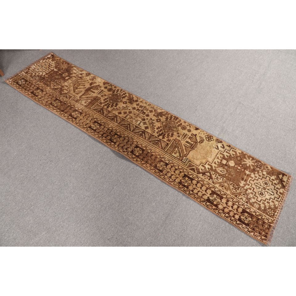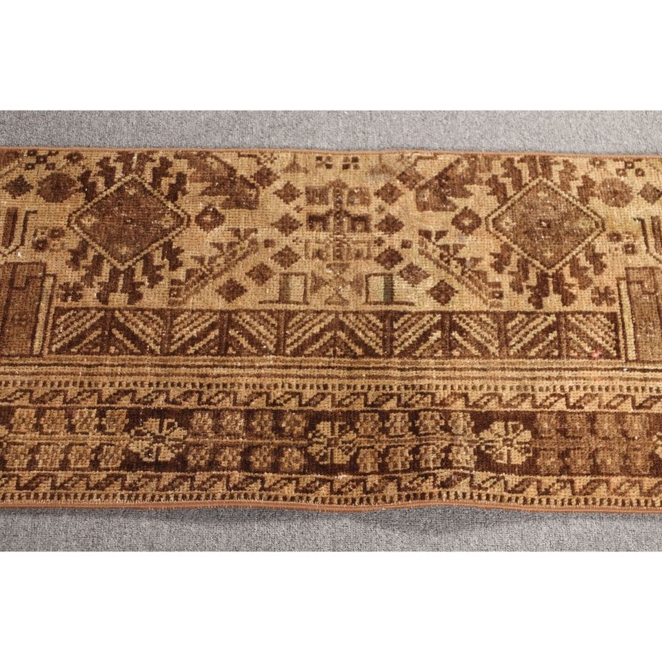 Petit tapis turc vintage 1,5x7 pieds, tapis brun