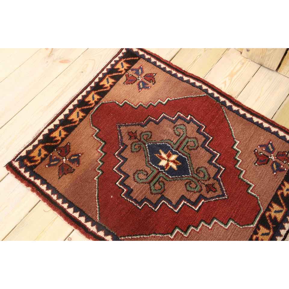 Petit tapis turc vintage 2,2x2,7 pieds, tapis à bordure rouge en laine